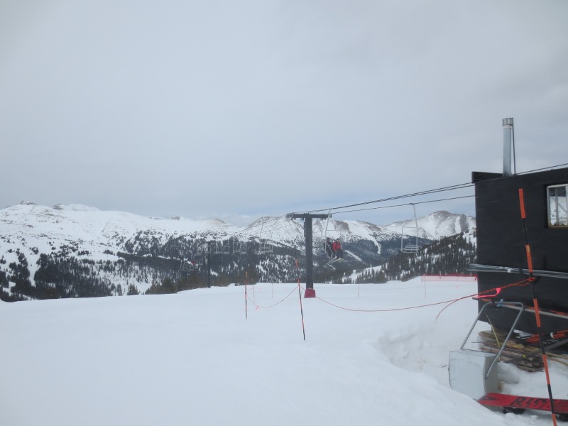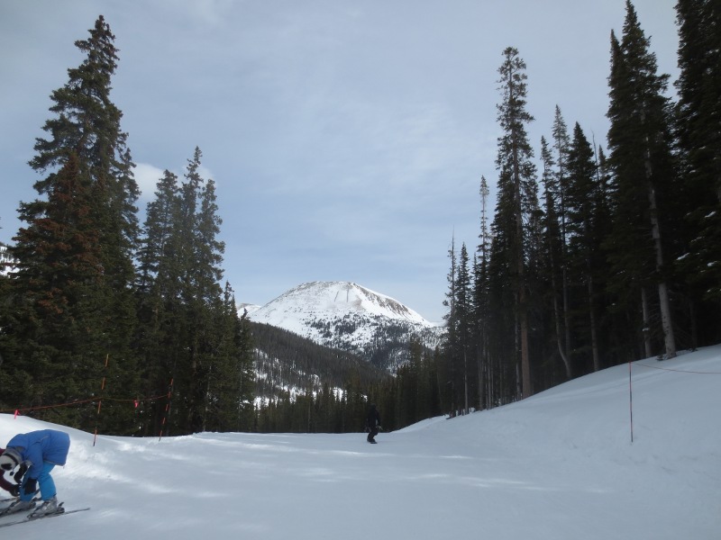 The first part of the day was spent in Loveland Valley. This area is geared towards beginners and has some shorter runs compared to Loveland Basin. We all started off on the All Smiles and Take Off trails. Good for warming up. Merri Beth was getting a little frustrated with the snowboard and decided to head back to trade in her equipment for some snow blades. While she did that, Zander and I went over to the other lift and explored some of the runs.