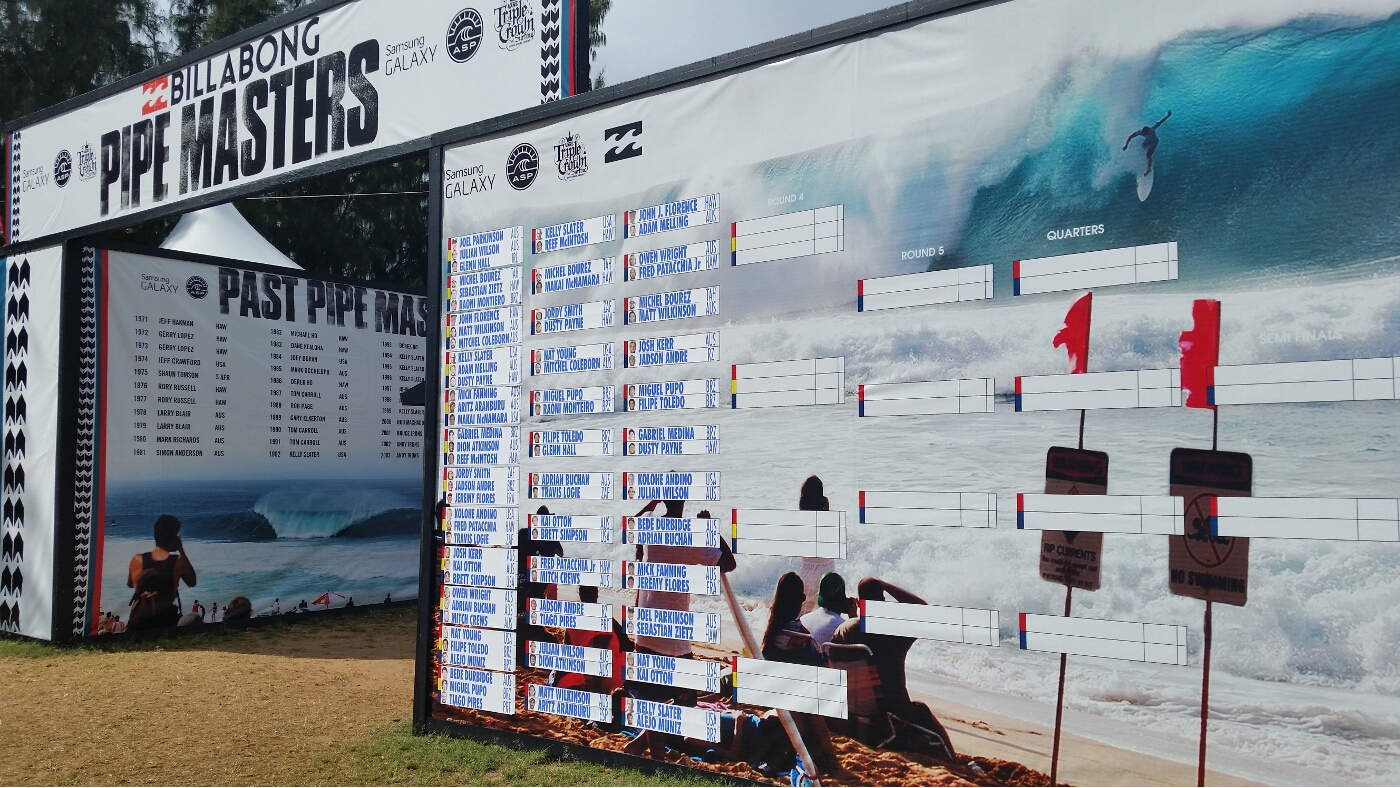 It was our first full day of vacation on Oahu, Wednesday December 17. What to do, what to do? We decided to head to the North Shore and check out the Billabong Pipemasters surf contest, the finale to the Vans Triple Crown.