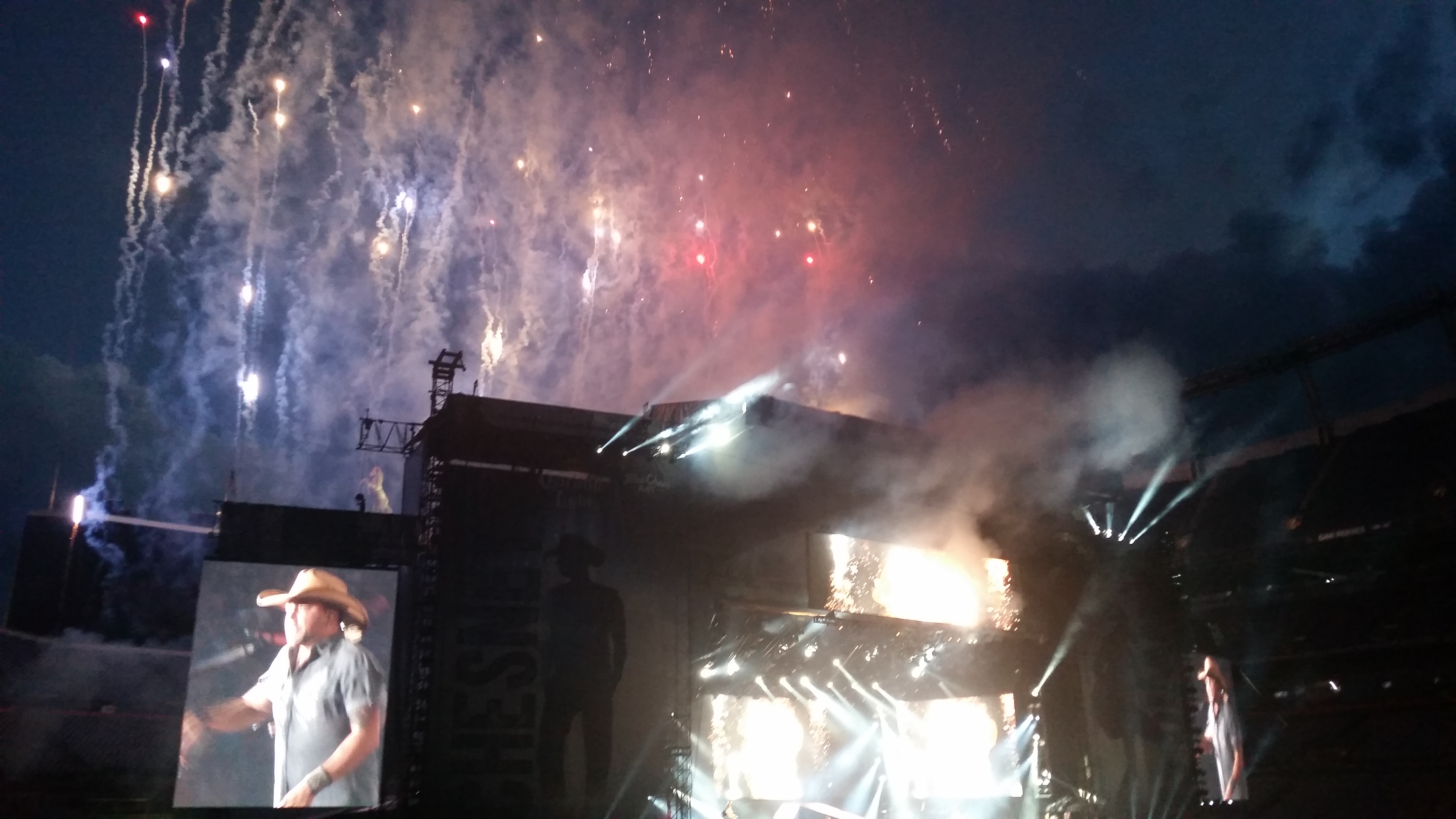 After a brief intermission, Jason Aldean took the stage and started to play his sets. His band played for about 90 minutes. While I don’t know many (read: any) of his music, Merri Beth was having a blast and getting into it. The two girls next to me seemed to know every word to every song and they were totally digging the show.