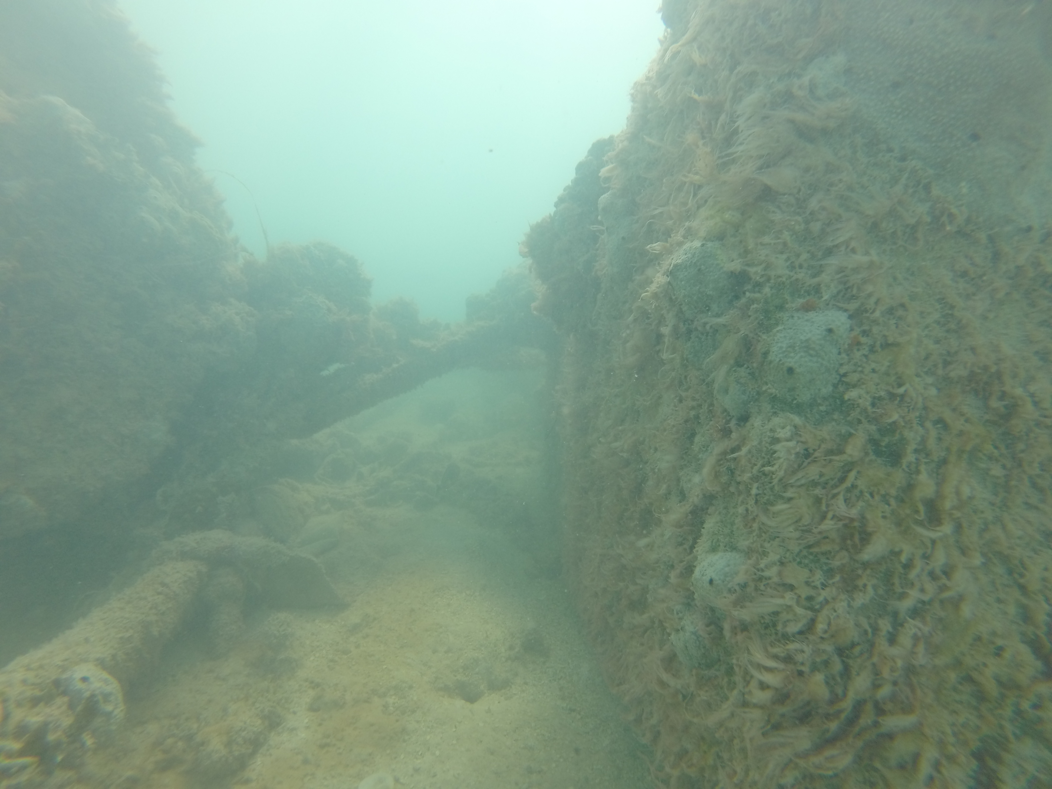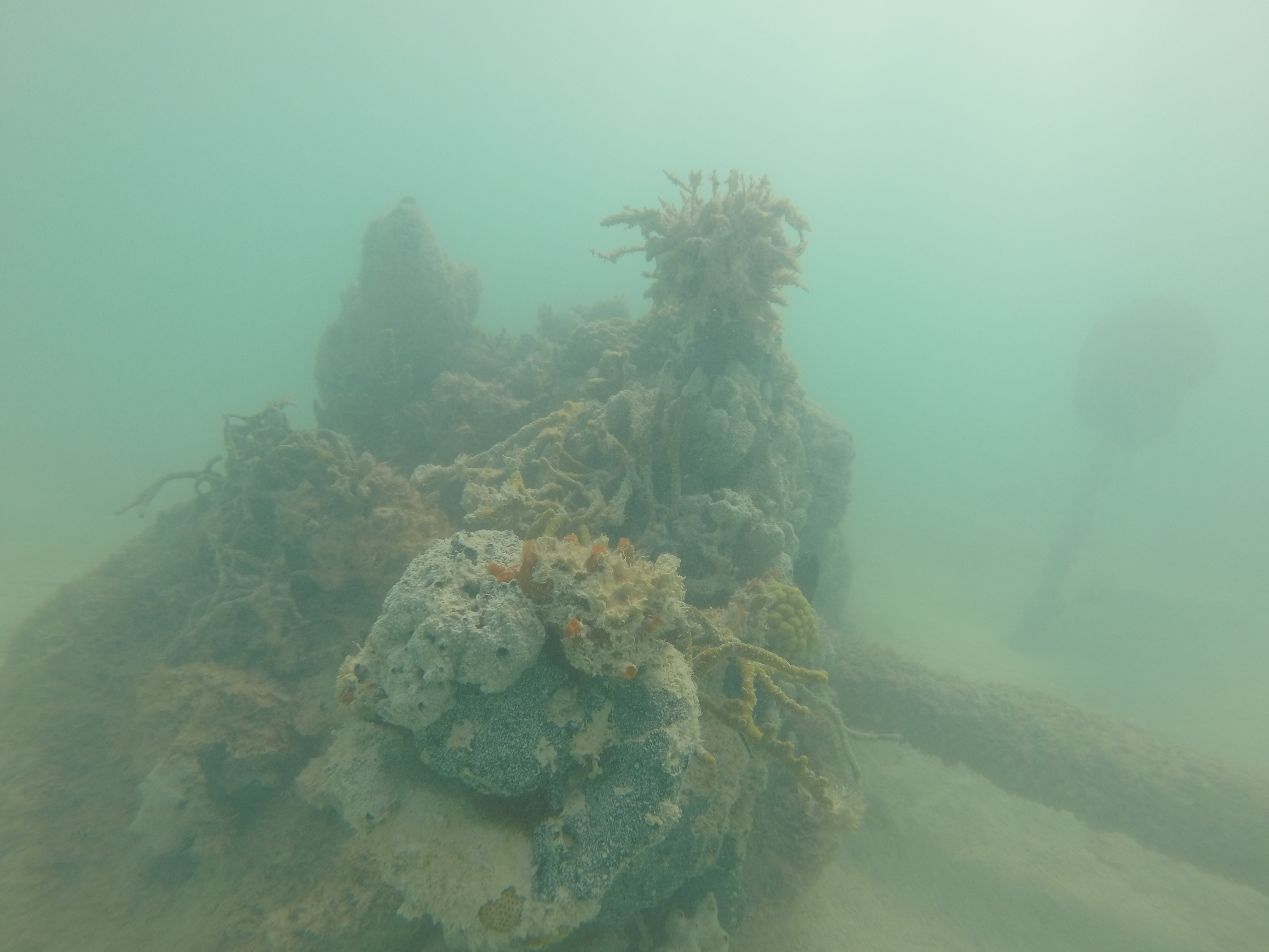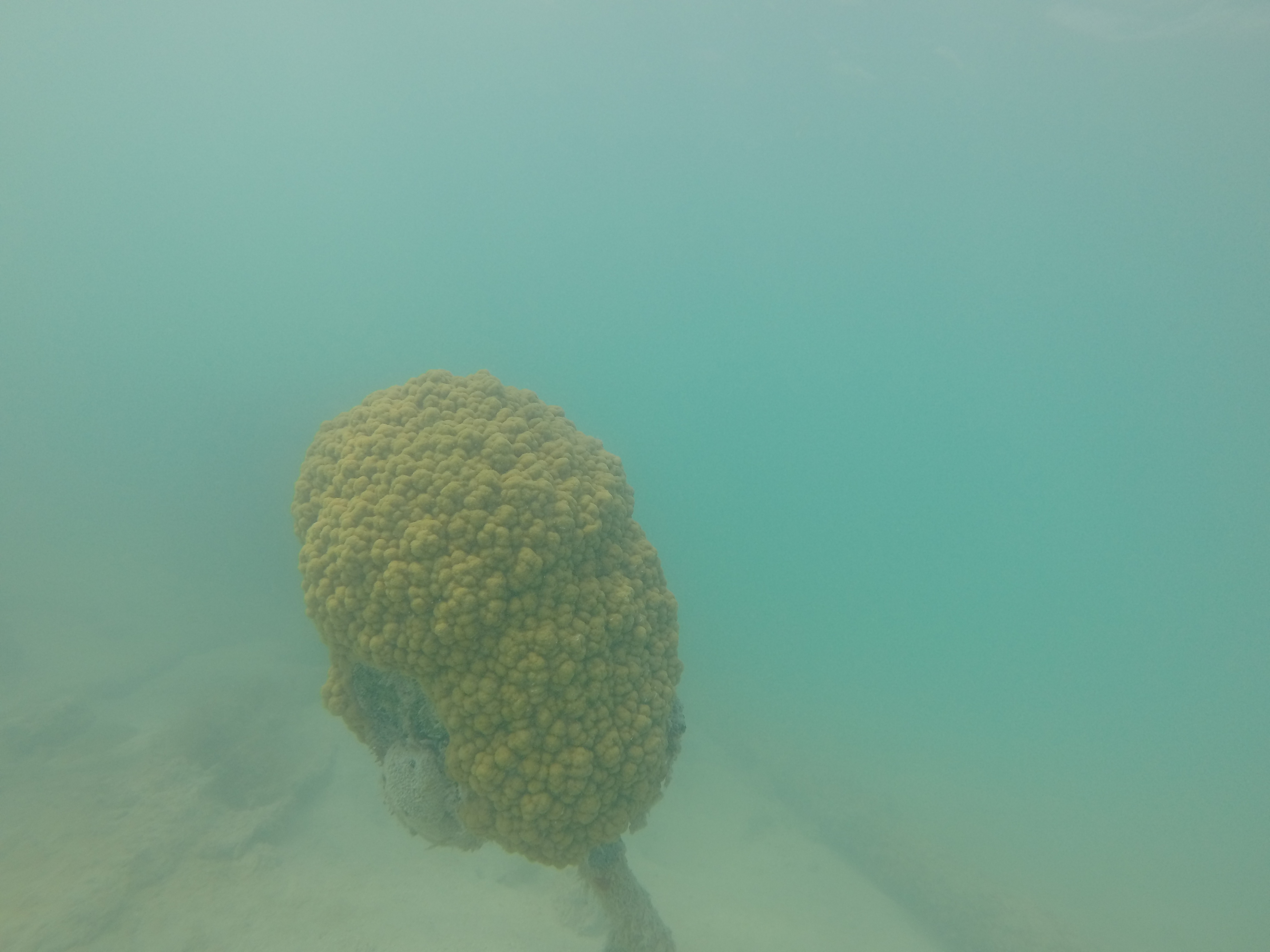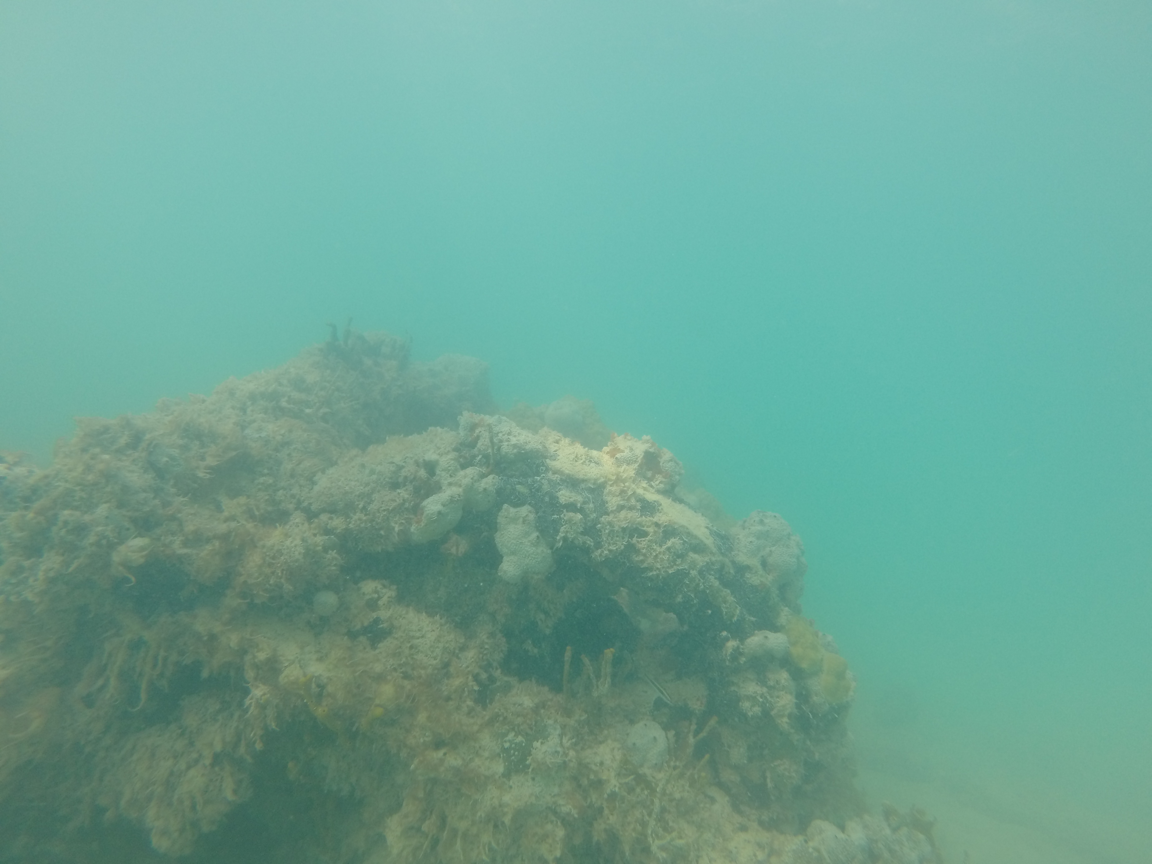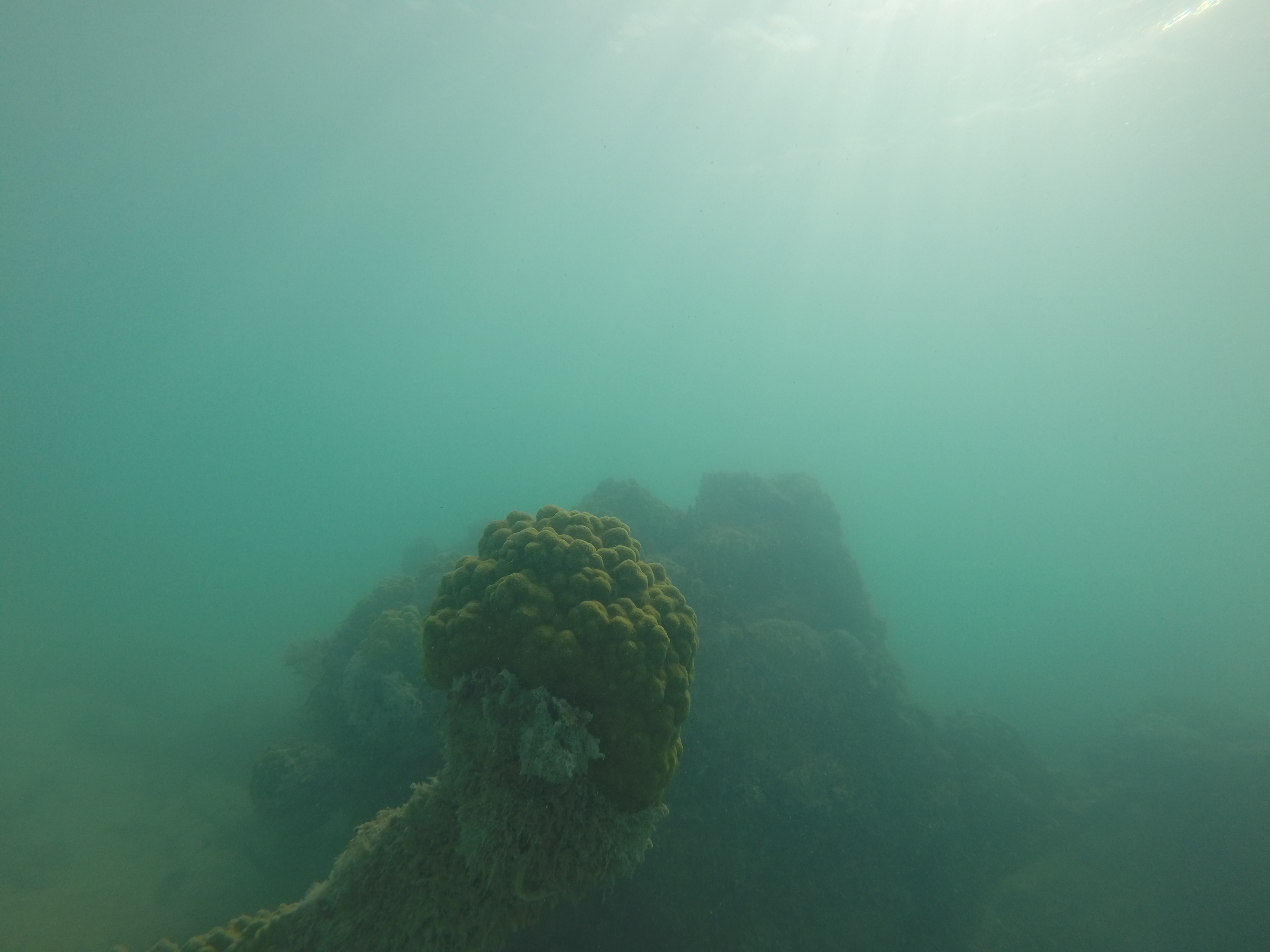 The water was calm, the bay was shallow, and our day just got a little better. Zander and I grabbed our snorkel gear and headed out. We randomly came across a sunken boat on the outskirts of the bay. We were way out there. I was heading towards a dive buoy and we totally scored.
