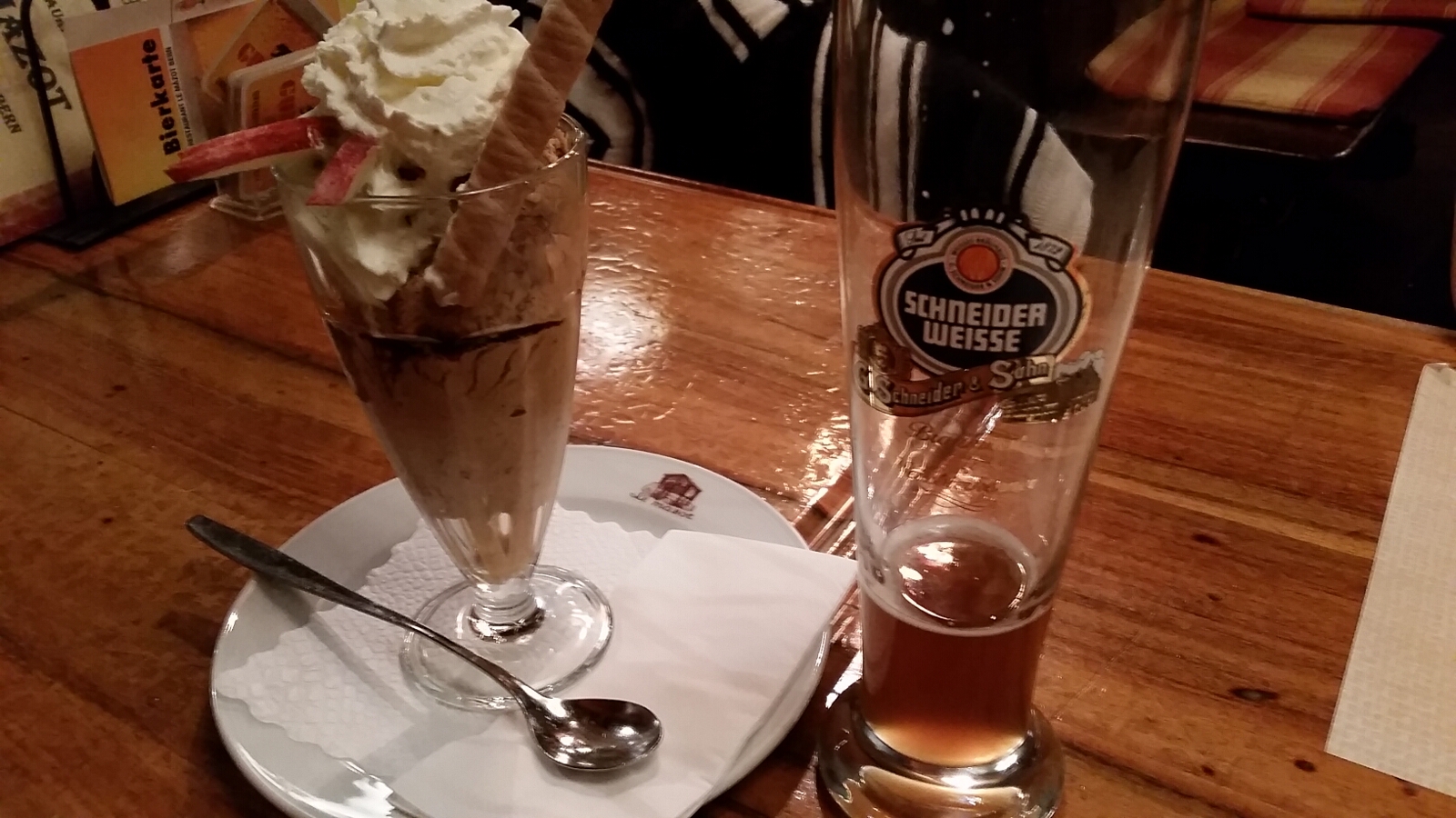 bern_20160116_153747MB, Zander, and I checked into our hotel room, a very nice Best Western. We immediately started researching some dinner options on our laptops then bundled up and headed out. We stumbled upon a restaurant called Le Mazot and it was game on. They had traditional Swiss food and we ordered a vat of cheese fondue and a hashbrown-like dish called Rösti. That was enough for us get the experience we wanted. After a long day on the train, this food hit the spot. And the beers were great. I enjoyed a wonderful Schneider Weisse Original.
