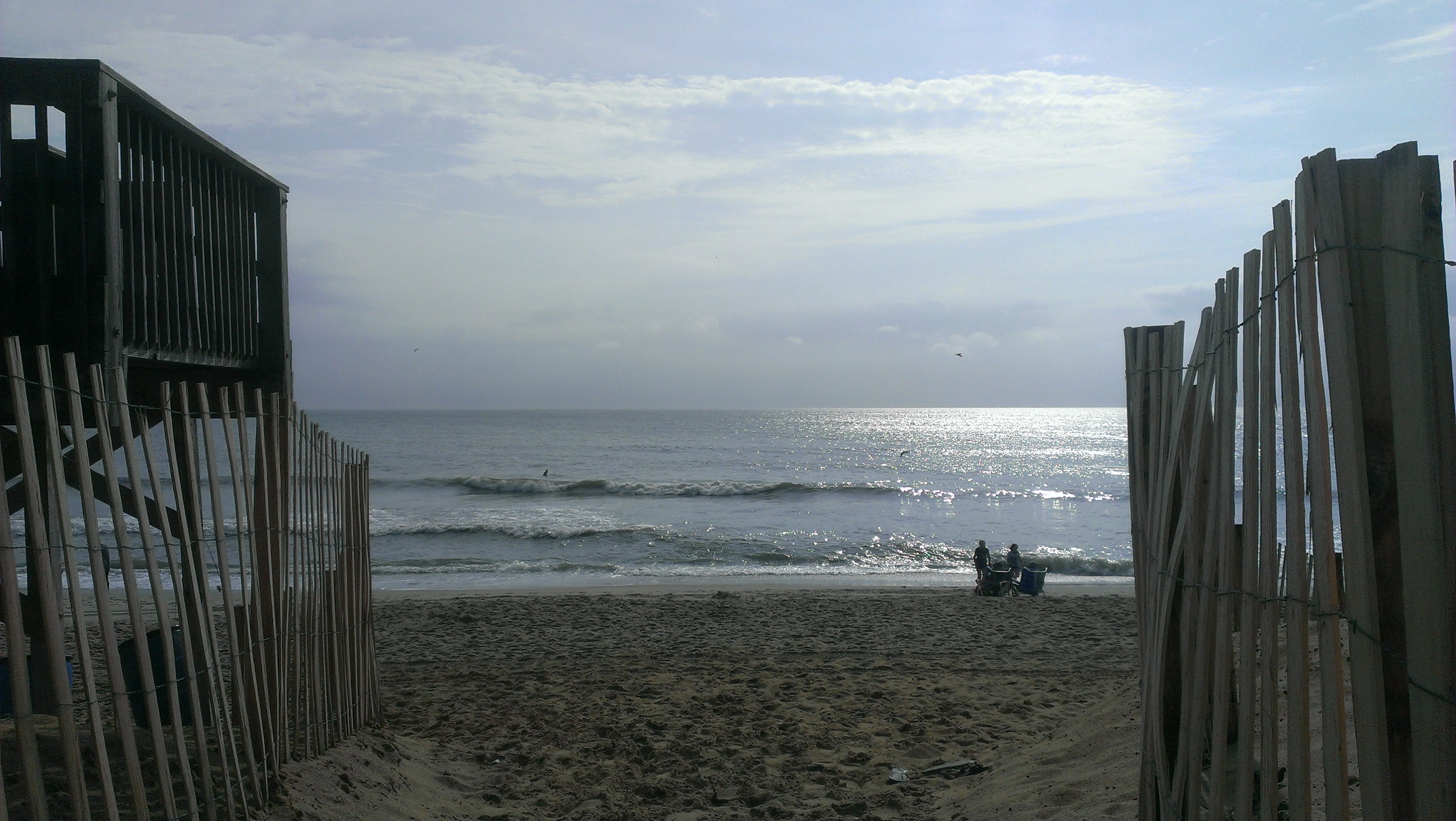 The sun had finally broken through the cloud cover and we started on our way to the pool, scraping plans for the beach. By the time we got to the Beach Road, it had started to rain. And it looked like the sky was about to open up. We knew these were isolated storms, and they were coming in from the Southwest and moving in a Northeast direction. We drove down to Nags Head, just past the storms edge, and we watched the darkness go by from the beach. It was a little windy, but it was nice to be outside—so even though we scrapped plans for the beach, we made it there anyway! Zander and I tossed the football for a while and we climbed the lifeguard stand to get some pictures of the dark clouds moving by from higher up.