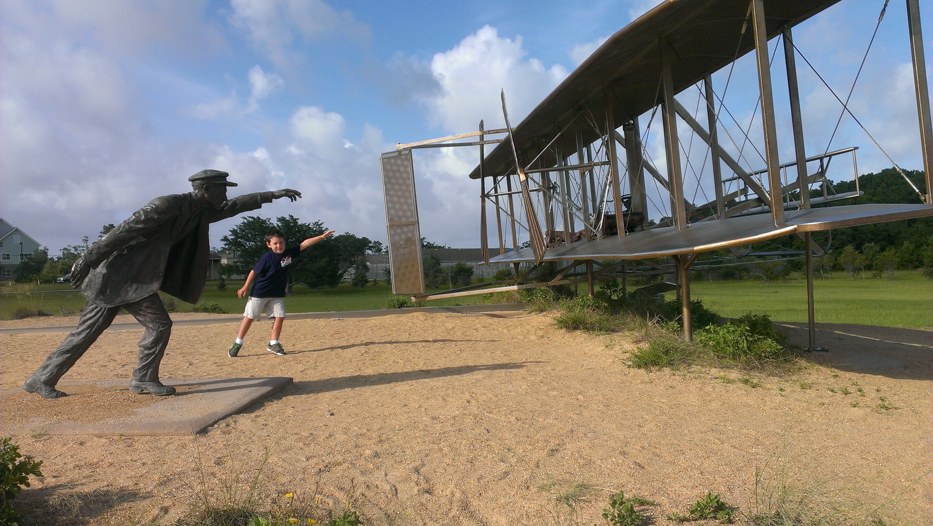 From the beach house, we headed toward the Wright Brothers Monument, went over to the First Flight school area, then did a lap around monument. Coco was getting a little cranky, and MB headed back to the house with her, while Zander and I continued on. We headed to Kitty Hawk along Bay Drive and Moore Shore Road, then came back. Zander and I got in just under 14 miles.