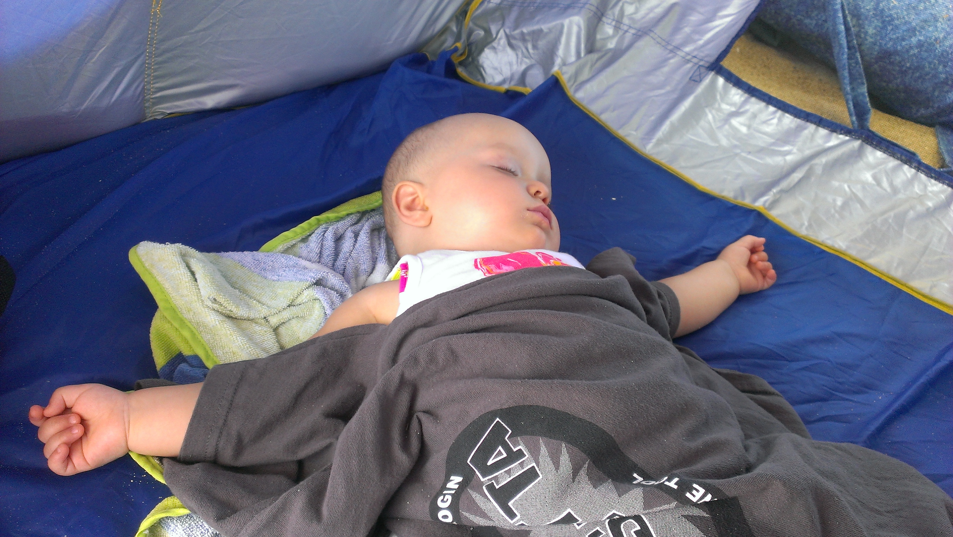 After the family bike ride, we were ready to beach it up. We lathered up, packed up the Jeep, made some lunch, and headed to the beach. After getting the tent set-up and settled in, I took Zander skim boarding. Then he wanted to go boogie boarding. The water was still a little chilly, but it was bareable. I got Zander into some fun little waves. Later, he was on his own.