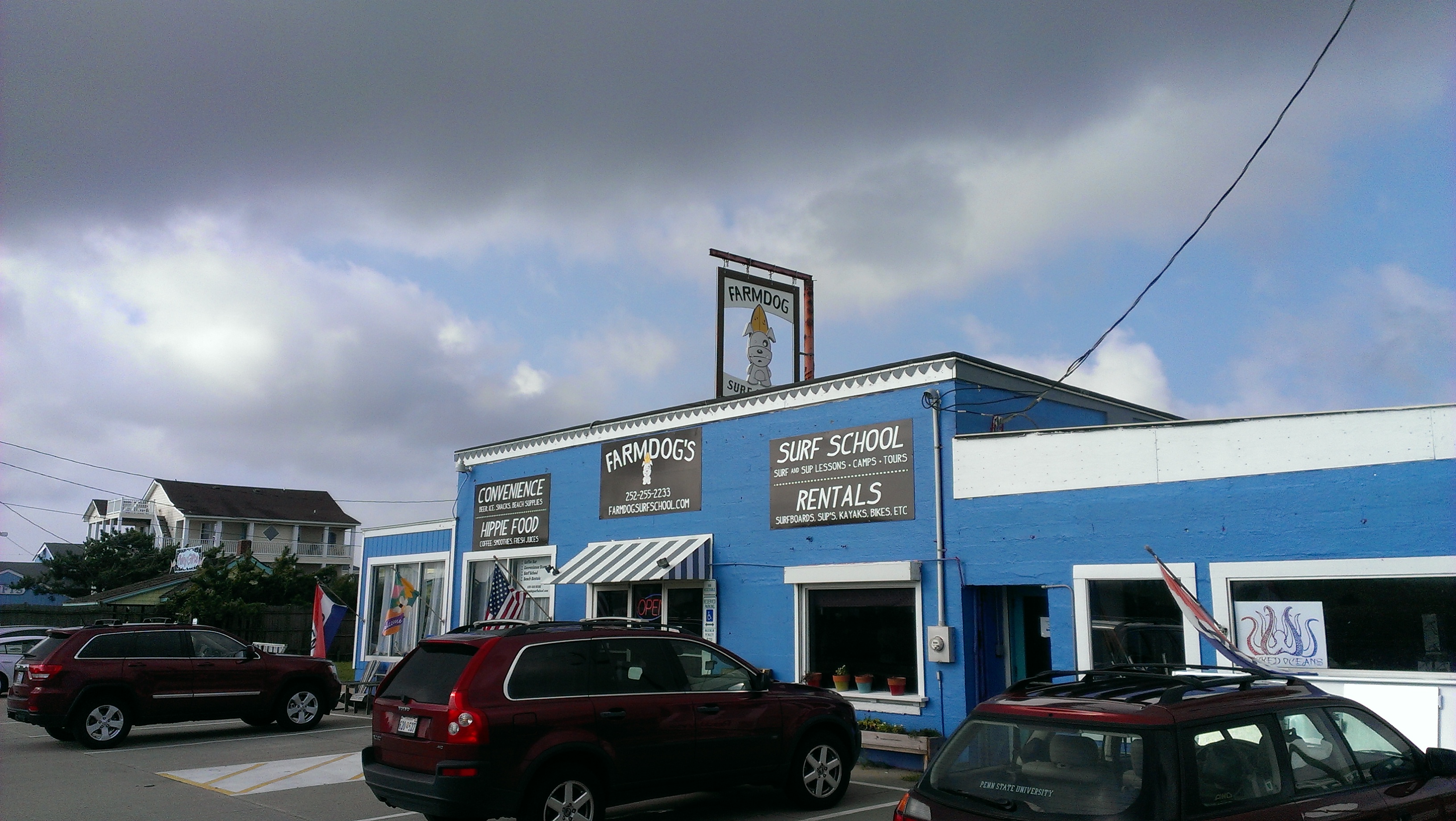 We did a quick surf check across the street from Farmdog’s and everything got better. It was about knee to waist high, clean, and it looked like a perfect day to learn how to surf.