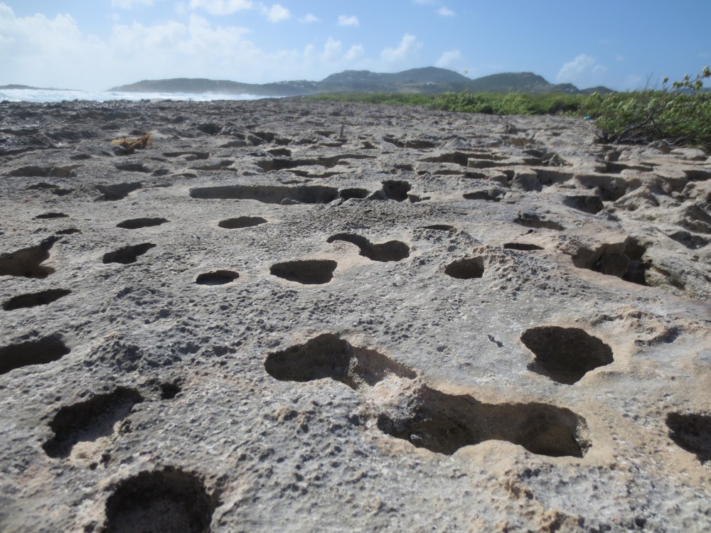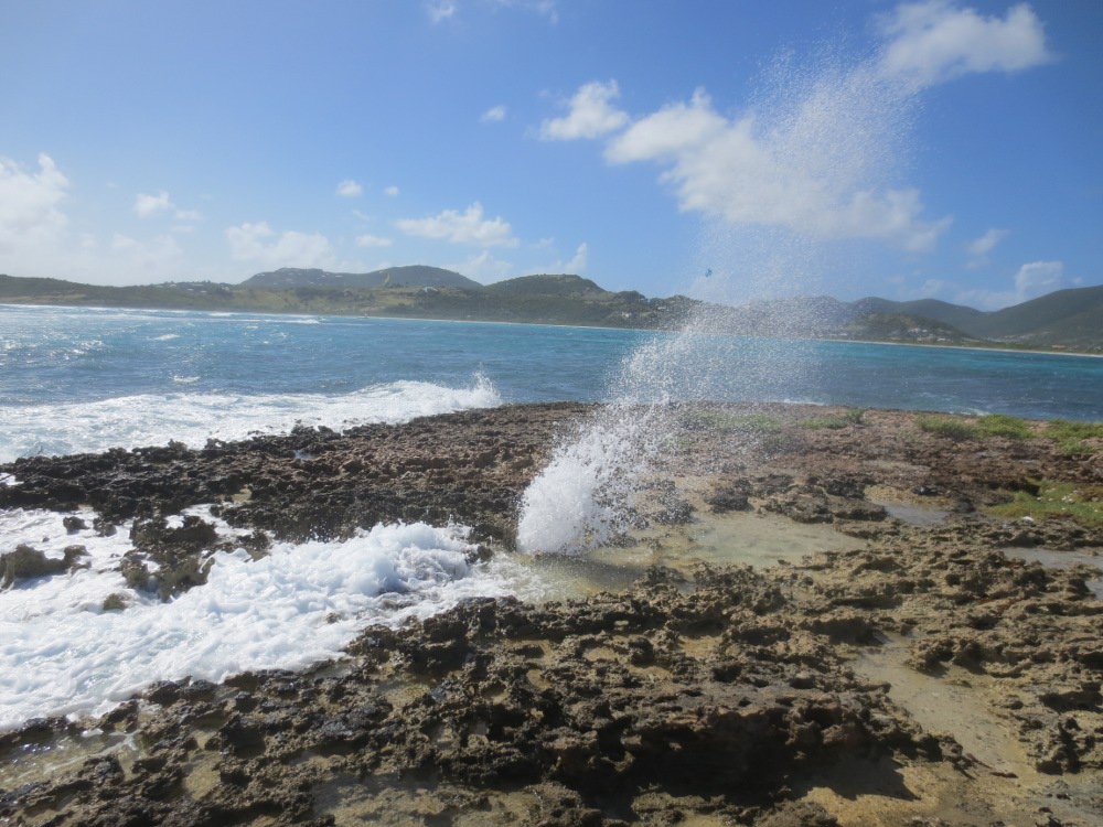 It was noticeably windier today, but that didn’t keep us from having an awesome beach day. Le Galion beach is somewhat protected from the trade winds that are currently howling across the island. We were some of the first people on the beach today and we expected a lot of locals since it was Sunday. Just like yesterday, we enjoyed the floating platforms and the calm waters of the cove. I was eyeing the surf the entire time and also took another trip out to the point to explore the reed and the water spout that I found yesterday.