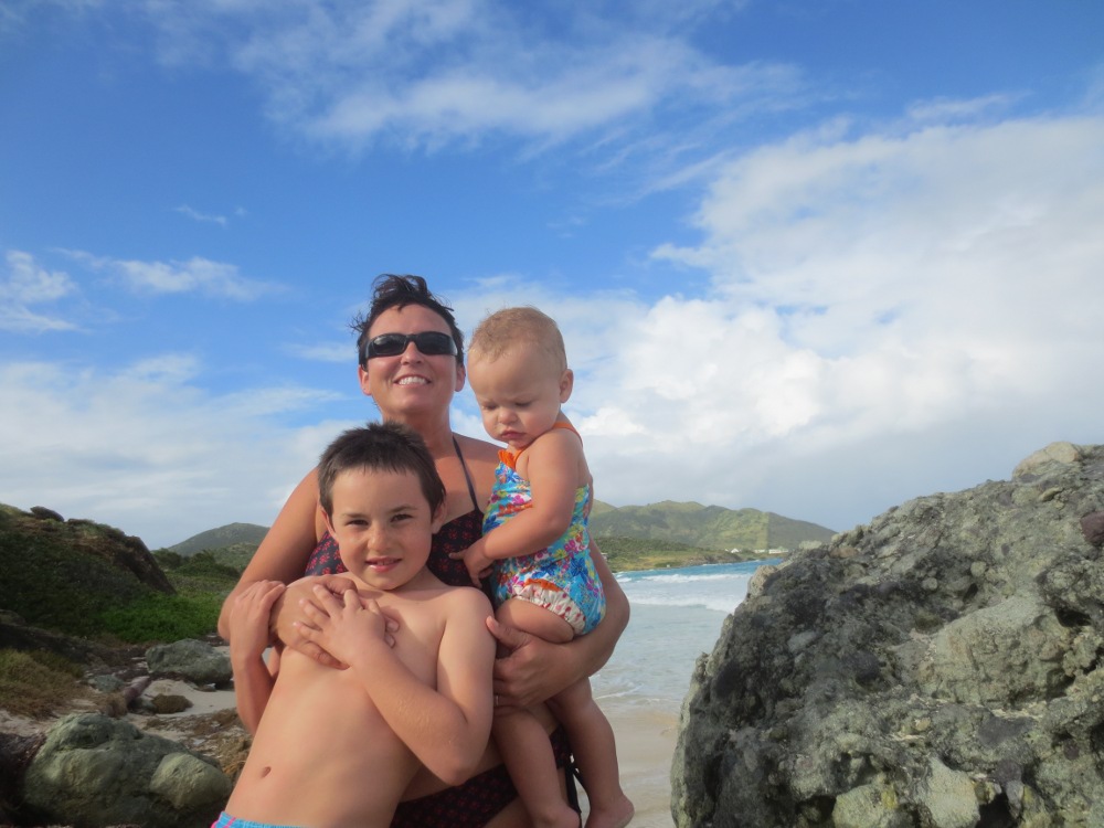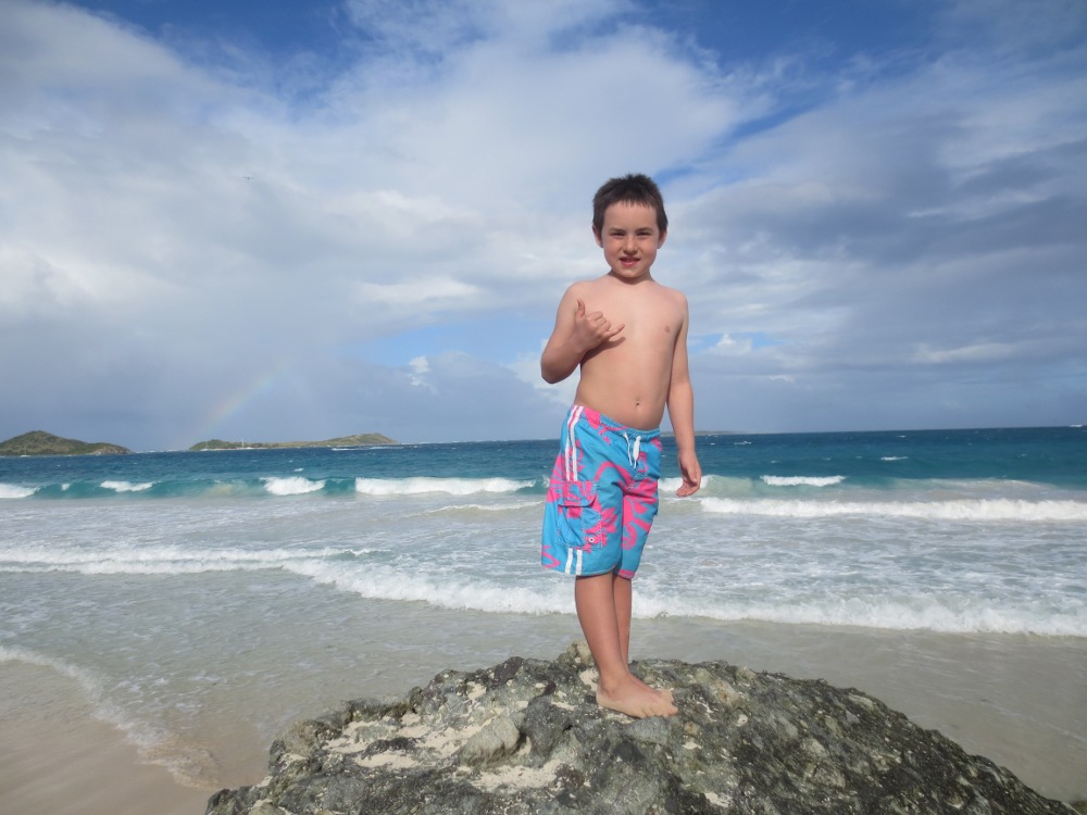 We arrive back at our place and decided to be tourist in Grand Case. The family walked along the beach to Calmos Cafe where MB and I enjoyed some adult beverages while watching the sunset. I took the kids back to our apartment, let Zander do a night swim in the Caribbean, and started getting dinner ready. MB went shopping!