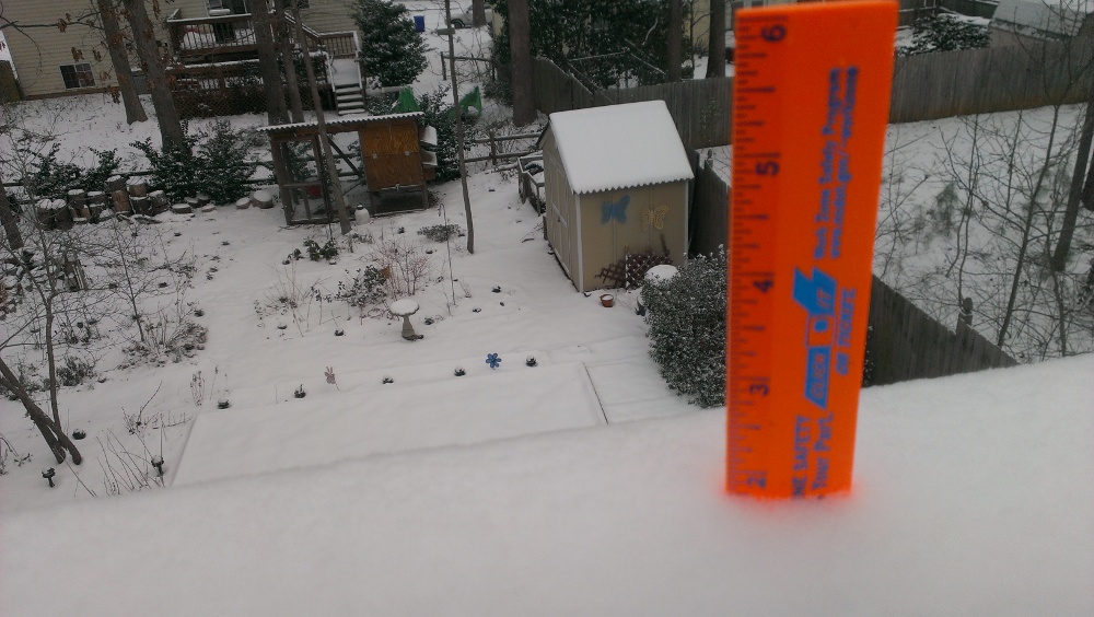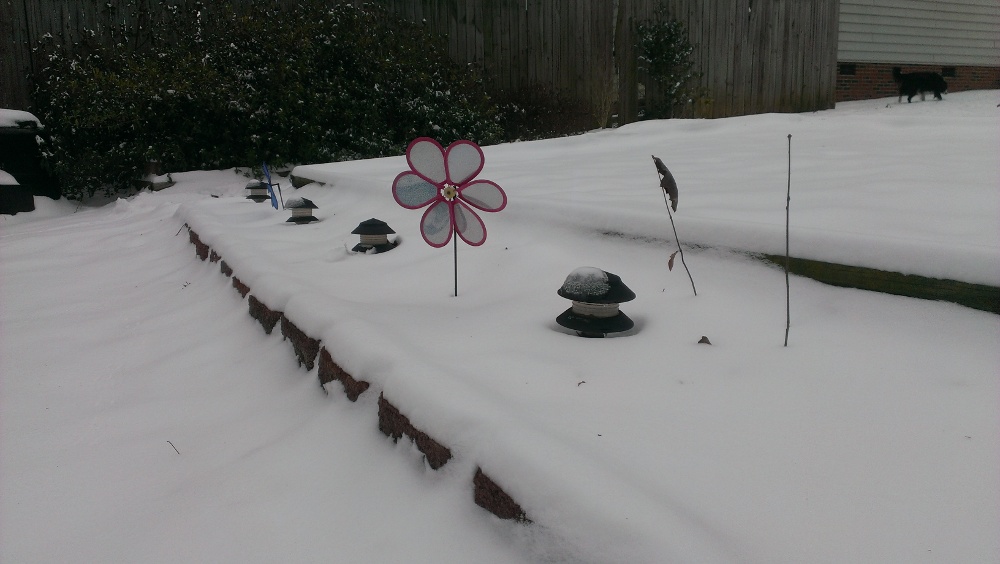 The snow started to fall at our house around 7:00 pm on January 28. Wake Counties schools were closed on Tuesday and eventually decided to close on Wednesday. I usually work from home on Wednesdays, so I enjoyed the extra company. But there was a fresh two to three inches of snow to go play in!