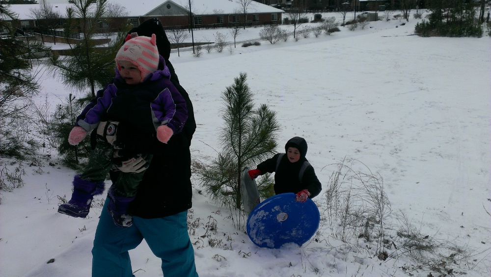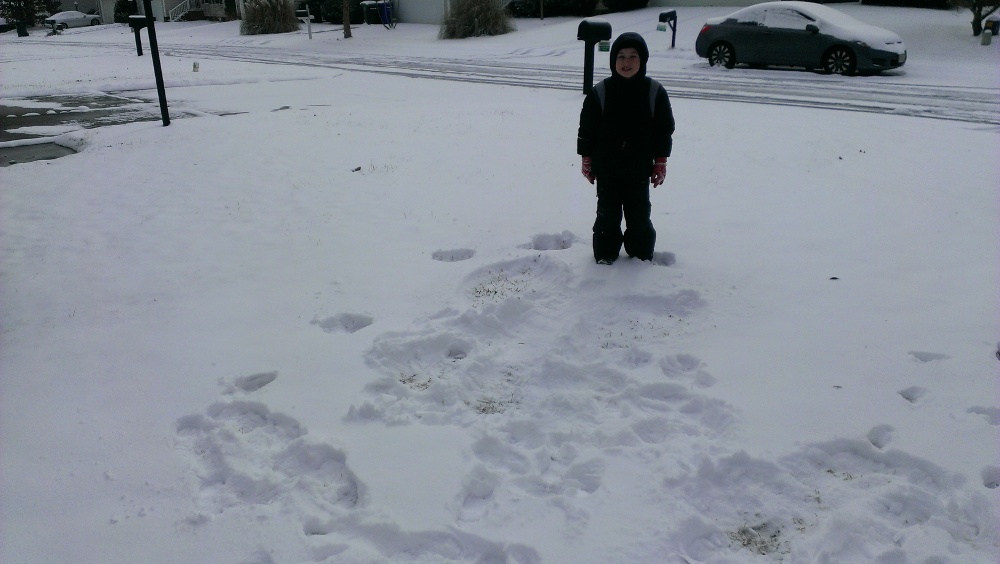 Our day started off normal, except we didn’t go to daycare or visit the school bus stop. Instead, we were enjoying the fresh, white blanket of snow around the house. Before we ventured out, there was some work to be done. Zander had to do some homework and Merri Beth and I had to VPN into work and check email and other things before we started our day.