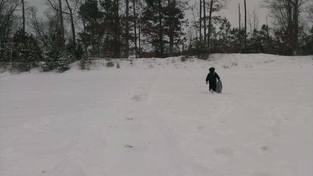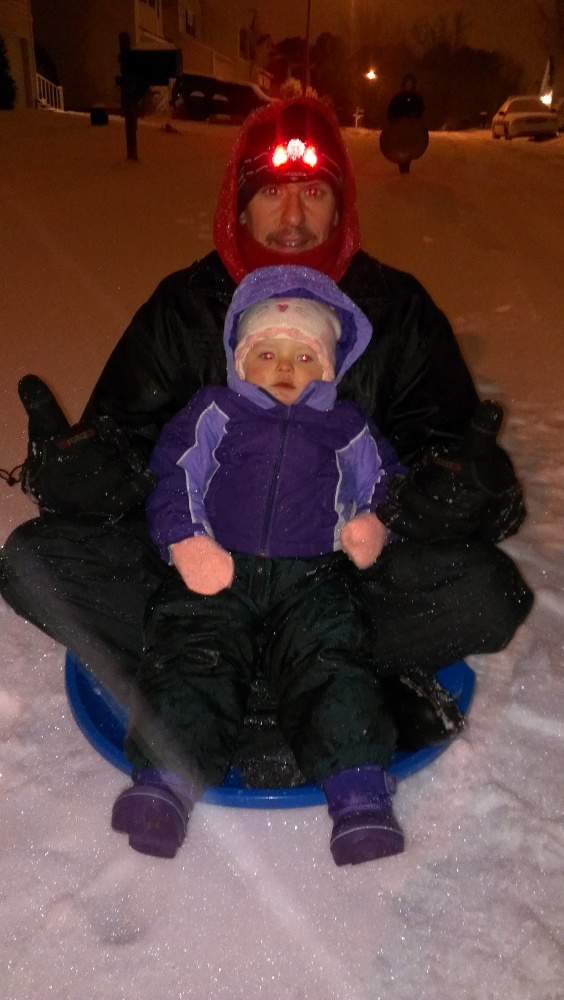 Coco was down for a nap and Zander was watching a movie. MB and I were trying to get as much work done as possible. Around 4:00pm, Zander and I ventured out for some sledding. We timed it perfectly because we had plenty of snow on the ground, 4-5 inches, and there was some sleet starting to come down. We had a blast sledding on some hills a few blocks away from the house.