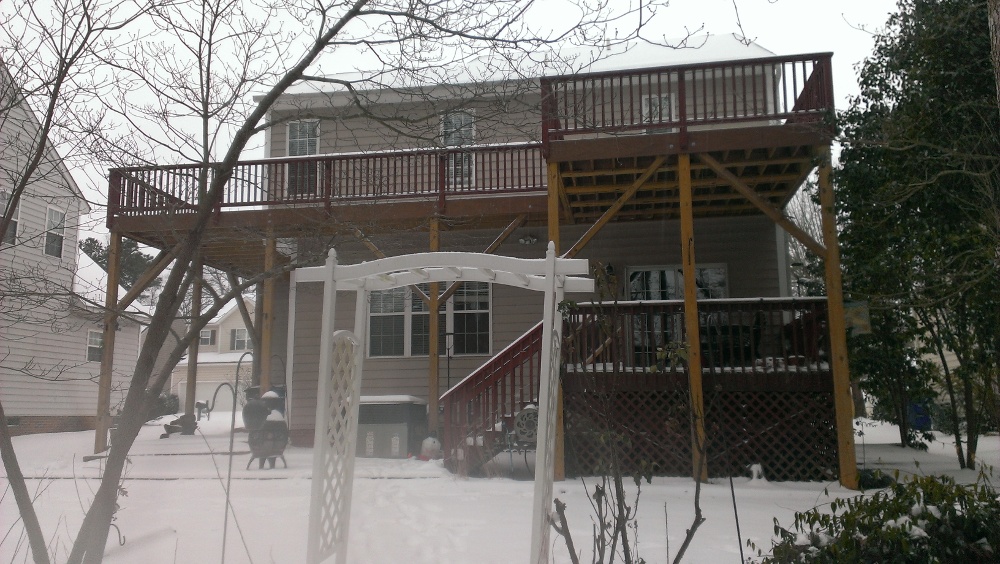 Merri Beth left to get the kids right after noon. And not a minute to soon. The snow started to fall around 12:15pm and it came hard and fast. MB got home just in time. Shortly after getting home safely, all the reports starting coming in of people getting stuck on the roads, stranded, and abandoning their vehicles. It was kind of nice to see the snow coming down during the day. This type of weather only happens in central NC about once every five years.
