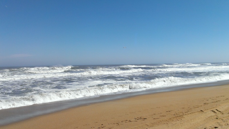 I got on the road around 9:30 am and was quickly familiar with 64 East and the beautiful North Carolina countryside. The sun was shining bright and warmed the chilly morning air. It took me about three hours to get to Kill Devil Hills. And my first stop…was a surf check. The waves were still a little out of control. (Sometimes we call it morning sickness, but it was after lunch already.)