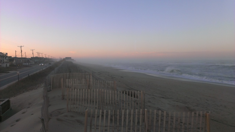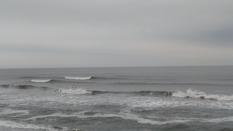 Around 4:00 pm, Brad and I checked the surf in Kitty Hawk. It was big, cold, and grinding. The surf had finally cleaned up enough where people were getting in the water. The waves were 6-8 foot with clean faces and breaking way outside. The water temp was 40Β° which meant we wearing full suits, booties, gloves, and hoods.