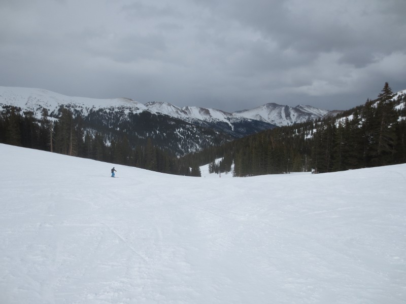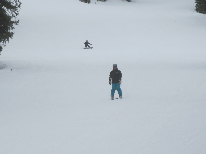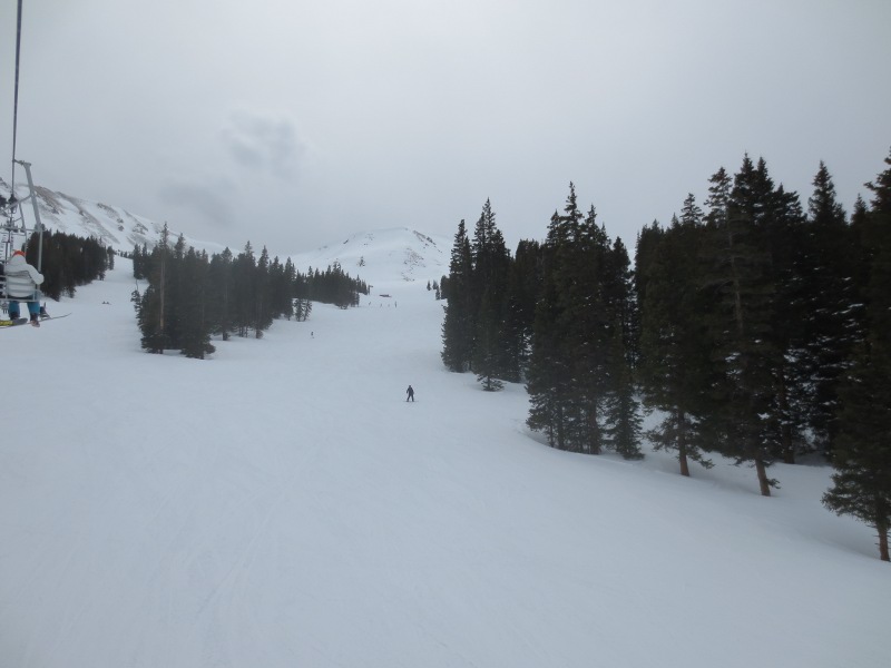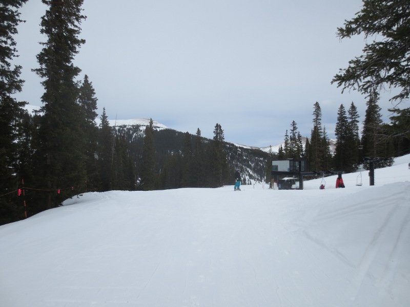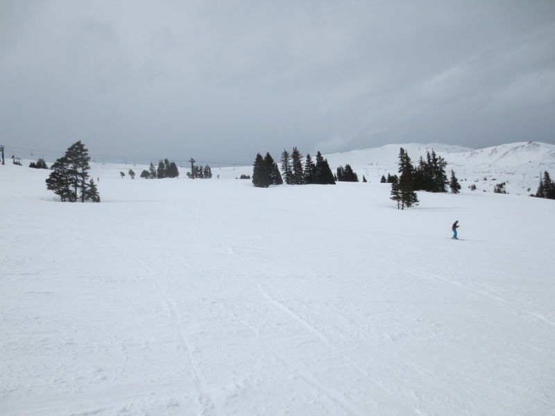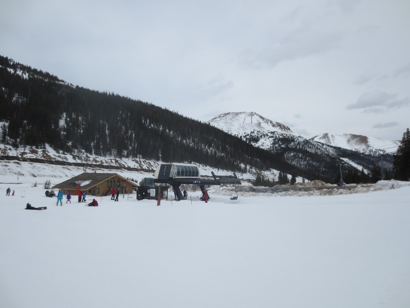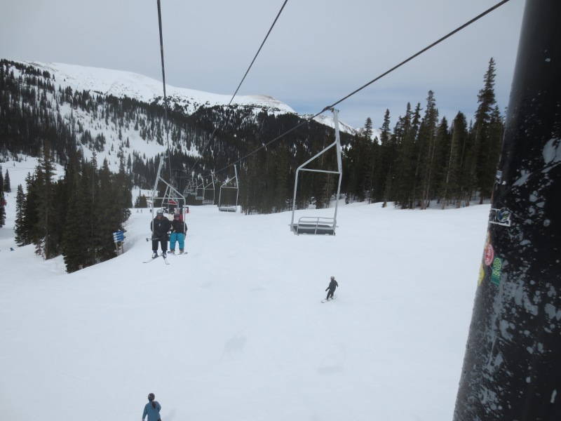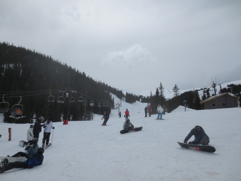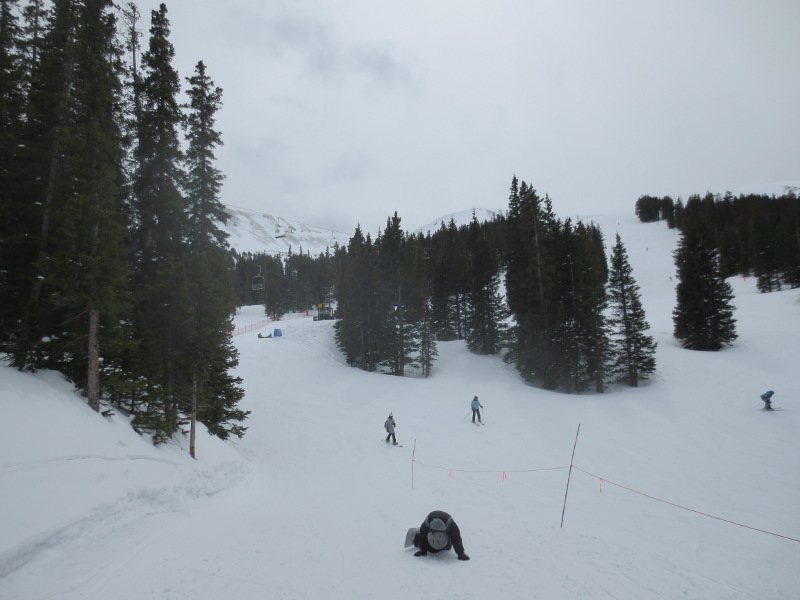 The first part of the day was spent in Loveland Valley. This area is geared towards beginners and has some shorter runs compared to Loveland Basin. We all started off on the All Smiles and Take Off trails. Good for warming up. Merri Beth was getting a little frustrated with the snowboard and decided to head back to trade in her equipment for some snow blades. While she did that, Zander and I went over to the other lift and explored some of the runs.