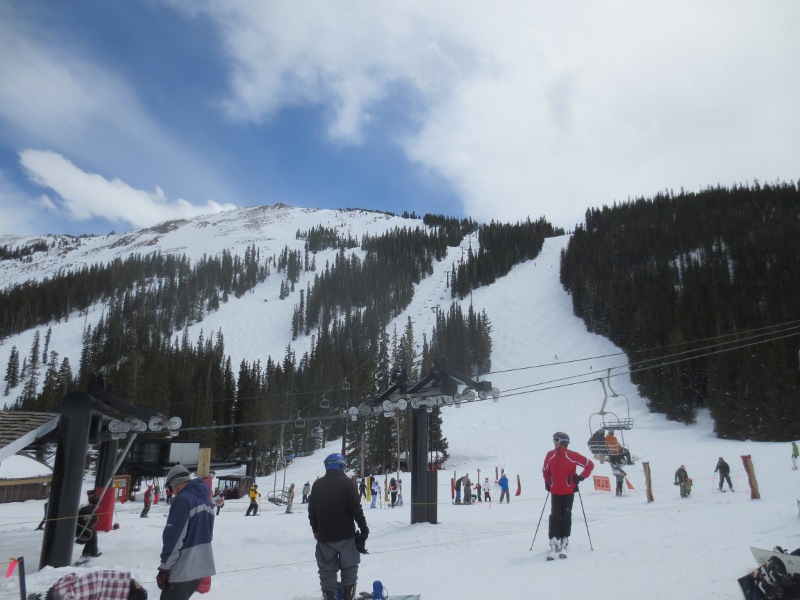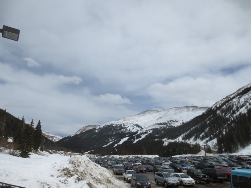 It was a short drive from Silverthorne to Loveland ski area. We went through this huge tunnel on our way to Loveland, located in the Arapahoe National Forest. We parked the car and got our gear on. The weather wasn’t as sunny as yesterday, but still great to be on the slopes.