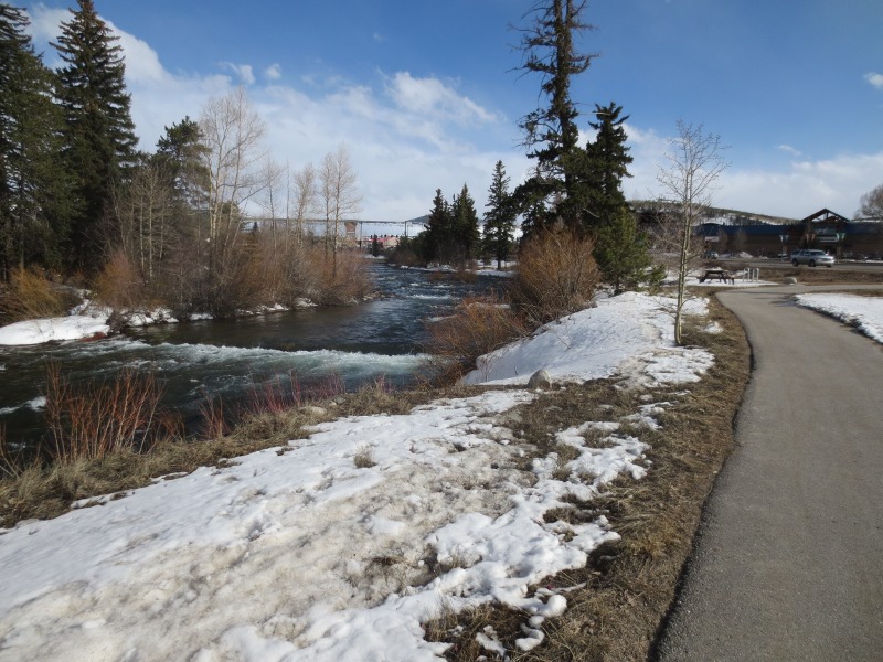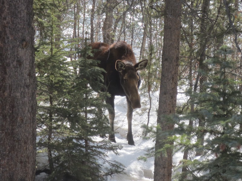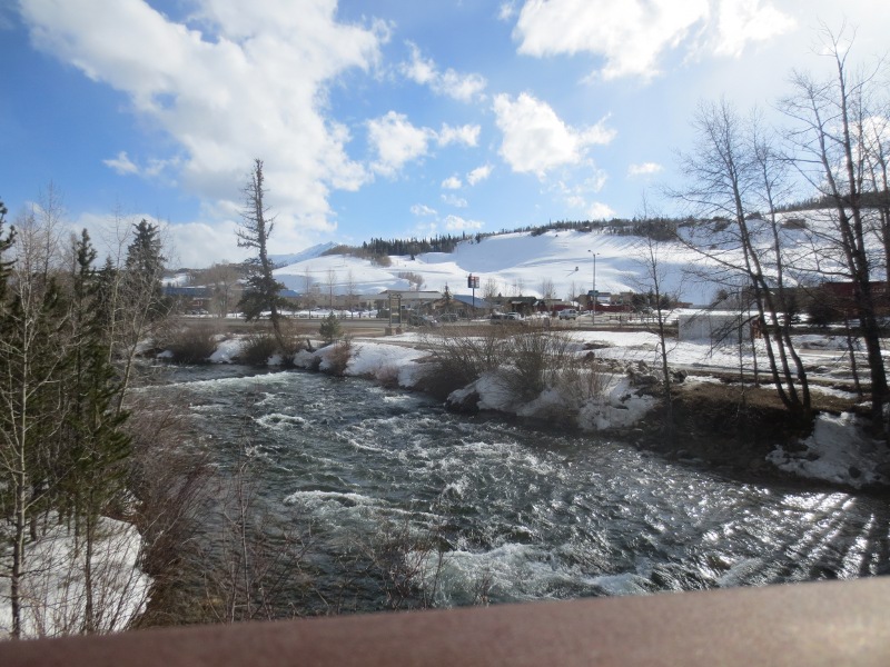 We were exhausted! After snowboarding all day, we went back to Silverthorne and relaxed. After checking out a few stores, we took a break along Willow Creek. The area has a bike path along the creek and we happened to stumble upon a moose. It was just chilling there along the creek. We can’t believe that we saw a moose, in the middle of Silverthorne.