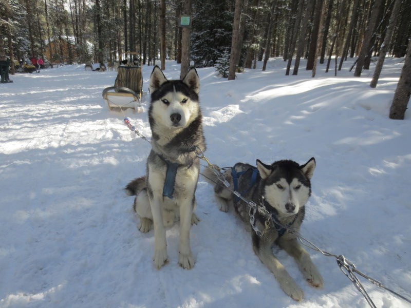 We checked in and got ready to hit the trails with the dogs. We used snow boats that they provided since our rental boots were probably not a good fit for this activity. We got a chance to meet the dogs and our guide gave us the skinny on the sled and some instructions on going. We were paired up with another family and everyone was taking turns mushing the sled and riding.