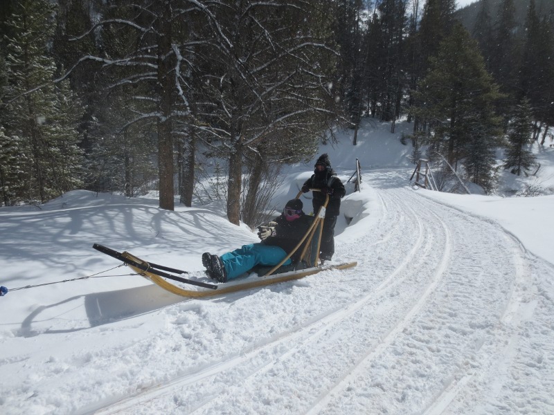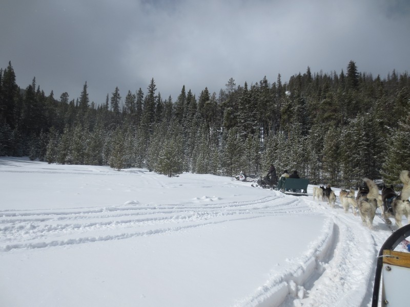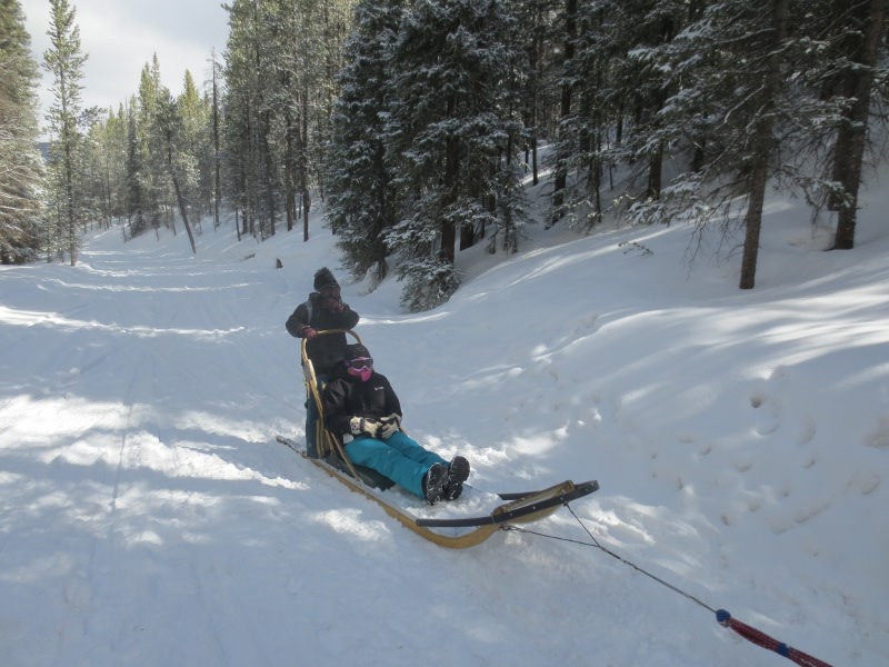 When you’re not riding or mushing the sled, your being pulled behind a snowmobile in a sleigh. The other family went first, then Zander and Merri Beth took a turn. Zander actually got to mush and MB was holding on for dear life, I mean, she was having the ride of her life.