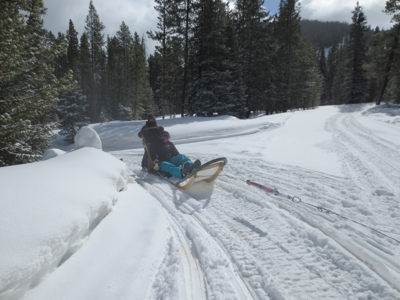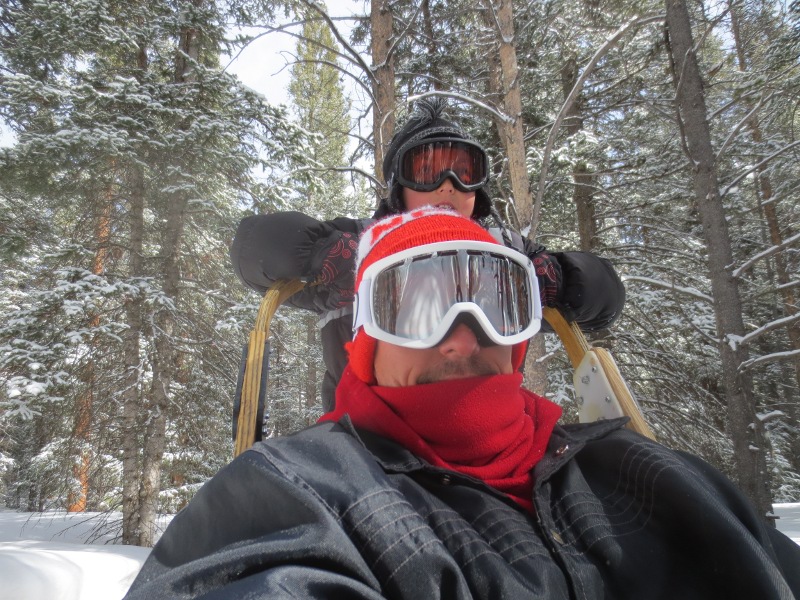 We woke up to several inches of snow on Monday, March 31. A winter storm had passed overnight and there was some fresh powder to play in today. Since we had been snowboarding all day yesterday, we wanted to change things up a bit. The family got ready for the day and headed south to Breckenridge. The roads had snow on them, so we were cautious and allowed extra travel time. Our first stop for the day was Good Times Adventures.