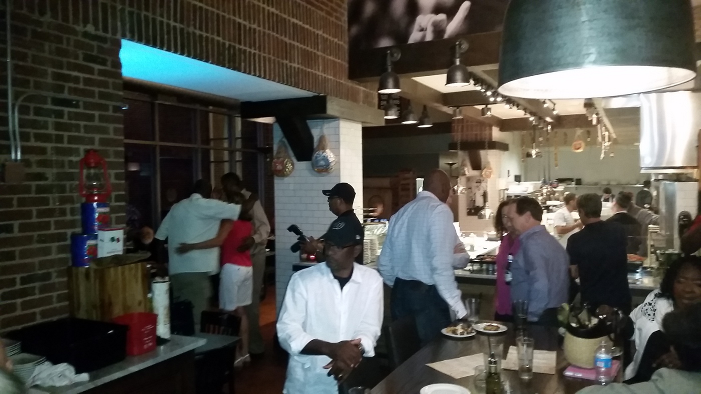 While we were eating dinner, we recognized NC State legend Dereck Whittenburg. Our server told us that the 1983 NC State Men’s Basketball team was having a reunion at Jimmy V’s.ย He confirmed that our Whittenburg sighting was legit, and even askedย Dereck to come over and say hello. Which he did!