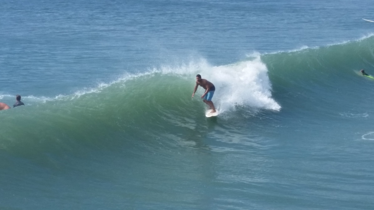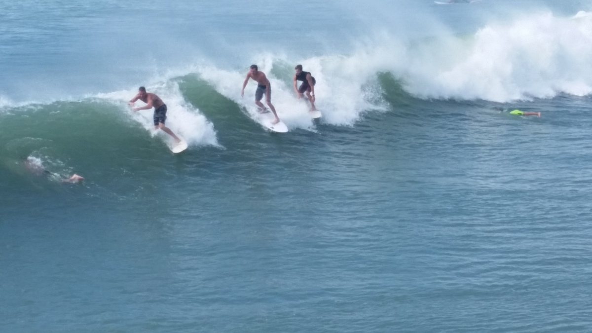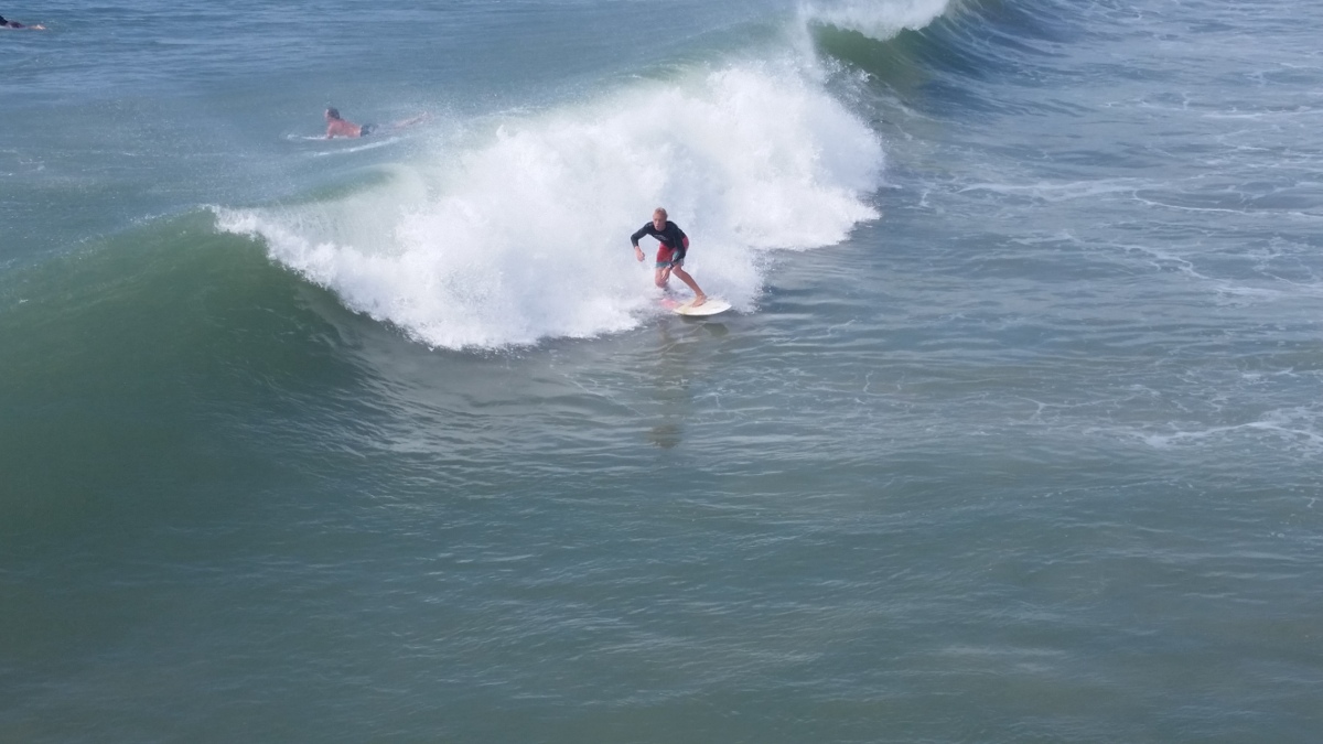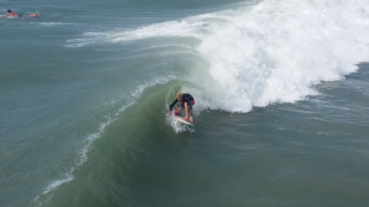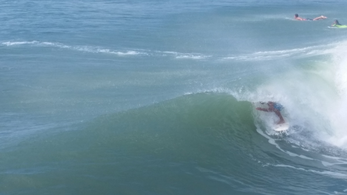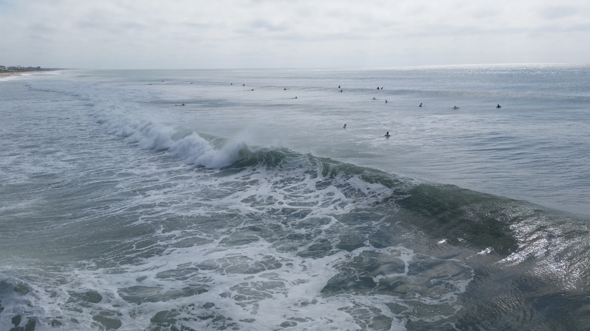 The tide was having an impact on some of the waves coming in, but there were rights (mostly close-outs) and fun lefts coming in. I was surfing on the east side of Bogue Inlet Pier, a first for me. I surfed Atlantic Beach once, but I wasn’t willing to drive the extra 20 minutes (each way) with my limited time.