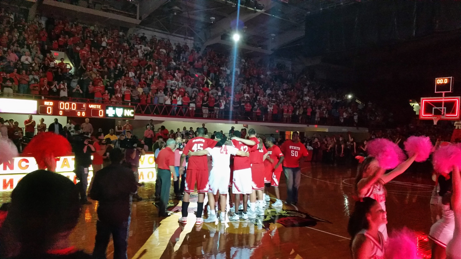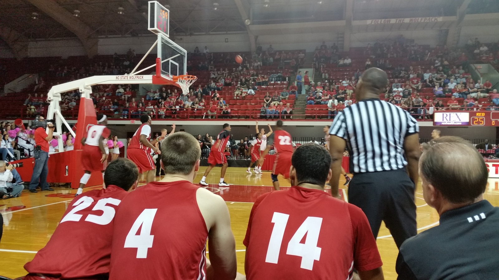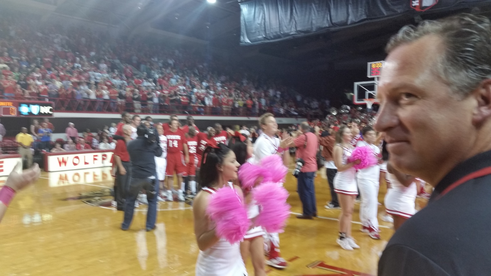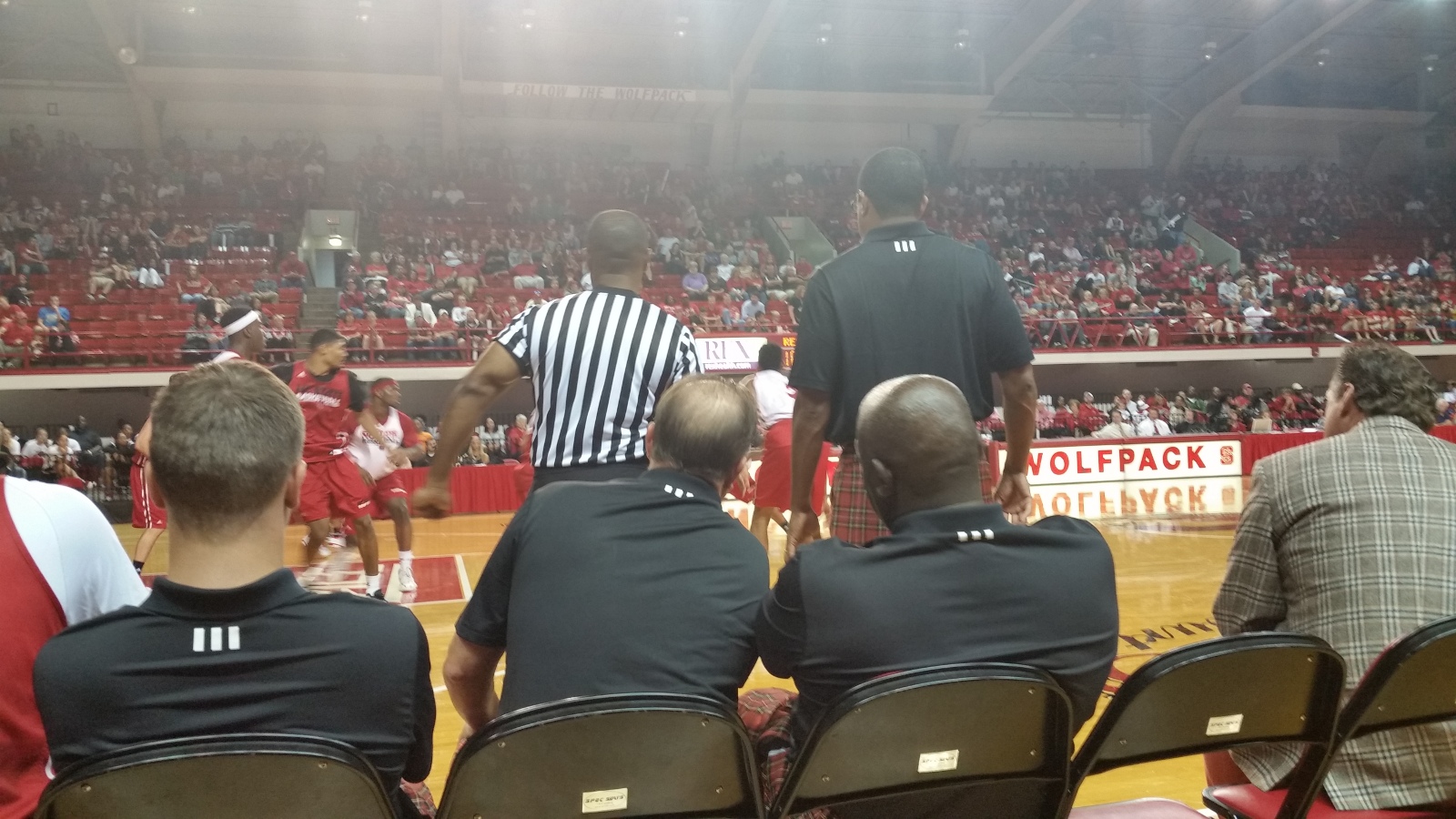 What an amazing night in Historic Reynolds Coliseum. I had the honor of being a guest coach for the NC State Wolfpack during the Alumni throwback game on October 17, 2014. Thanks to 99.9 The Fan, Adam Gold, and Joe Ovies, I was courtside with Wolfpack greats like Gugliotta, Monroe, Corchiani, Del Negro, Whittenburg, and Towe to name a few.