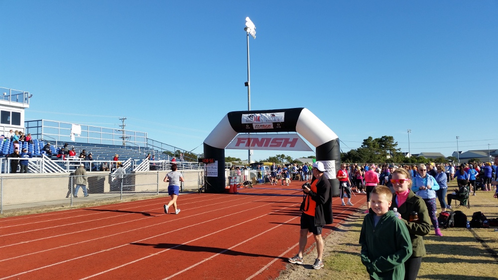 Merri Beth had signed up for the 10K on the Saturday before race day. I got the kids ready to head out and cheer her on. She finished the course in just over an hour on a beautiful Saturday on the Outer Banks.