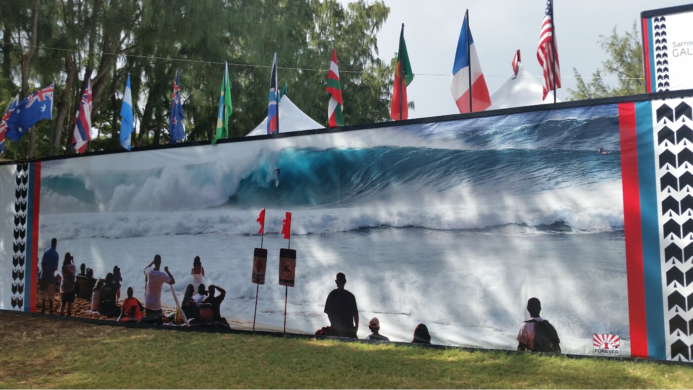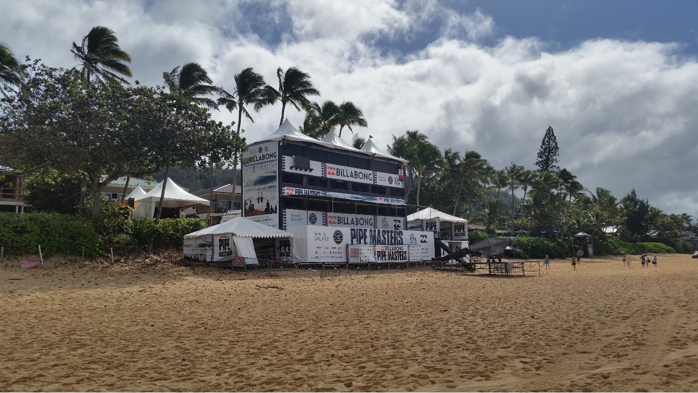 It was our first full day of vacation on Oahu, Wednesday December 17. What to do, what to do? We decided to head to the North Shore and check out the Billabong Pipemasters surf contest, the finale to the Vans Triple Crown.
