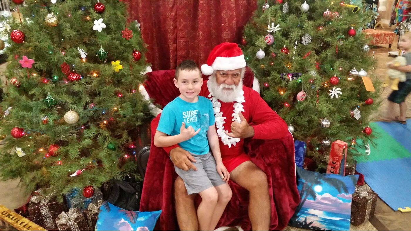 After lunch, we made a visit to Santa. He was at Planet Surf. Zander got to see a real Hawaiian Santa, Coco, however, was not impressed.