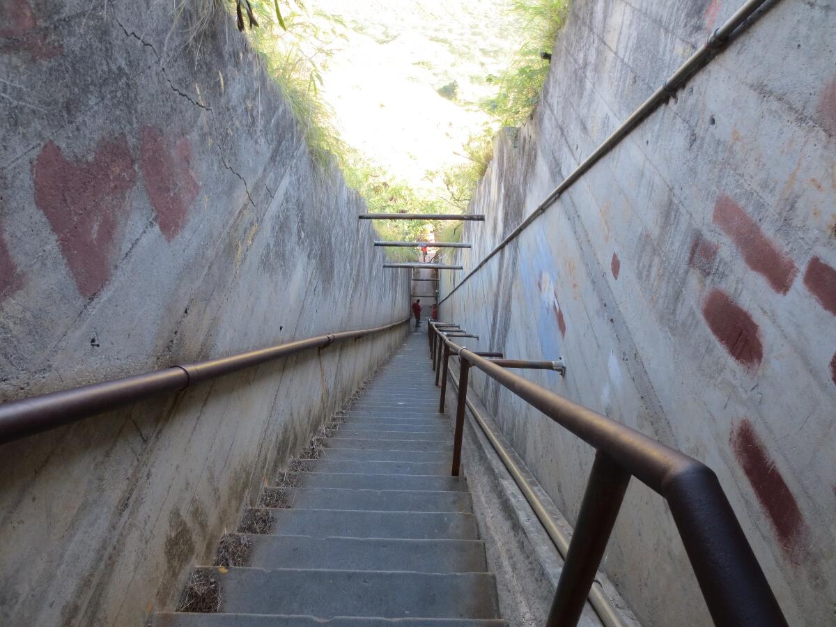 At the top, there are several lookout points. We made it up the first set of 74 steps and through a dark tunnel after winding our way up the trail on the inside of the crater. Since our last visit, there was an addition to the trail that lets you bypass the next set of steep, 99 steps that lead to the summit. We took the newer trail and enjoyed the view from one of the lookouts, then continued on.