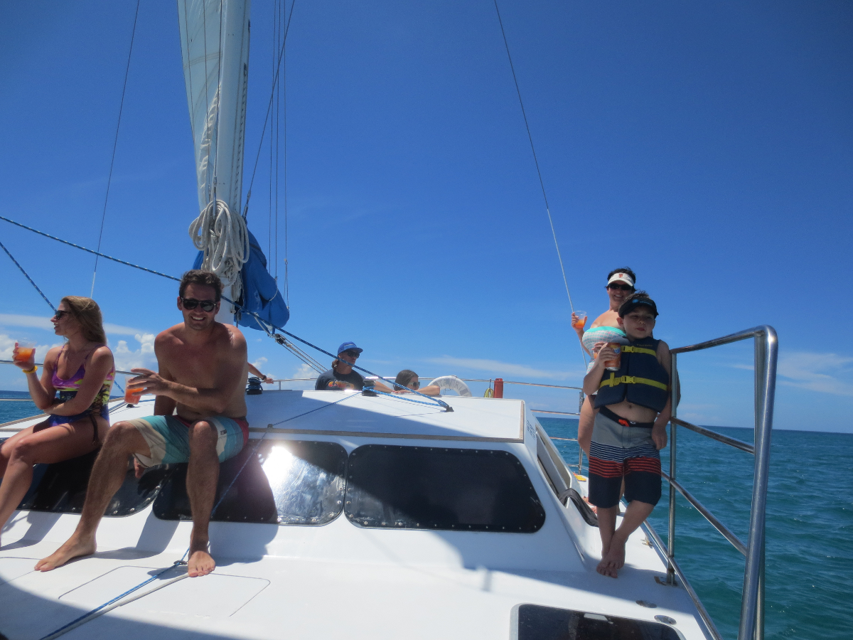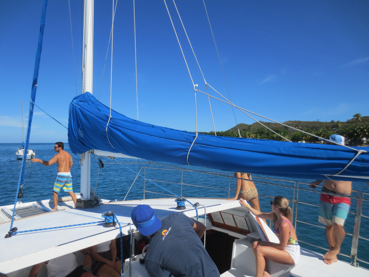 Around 9:30 am, Merri Beth, Zander, and I boarded the Katarina catamaran along with some other folks from Los Angeles and Orlando for a day of sailing on the west side of Puerto Rico.
