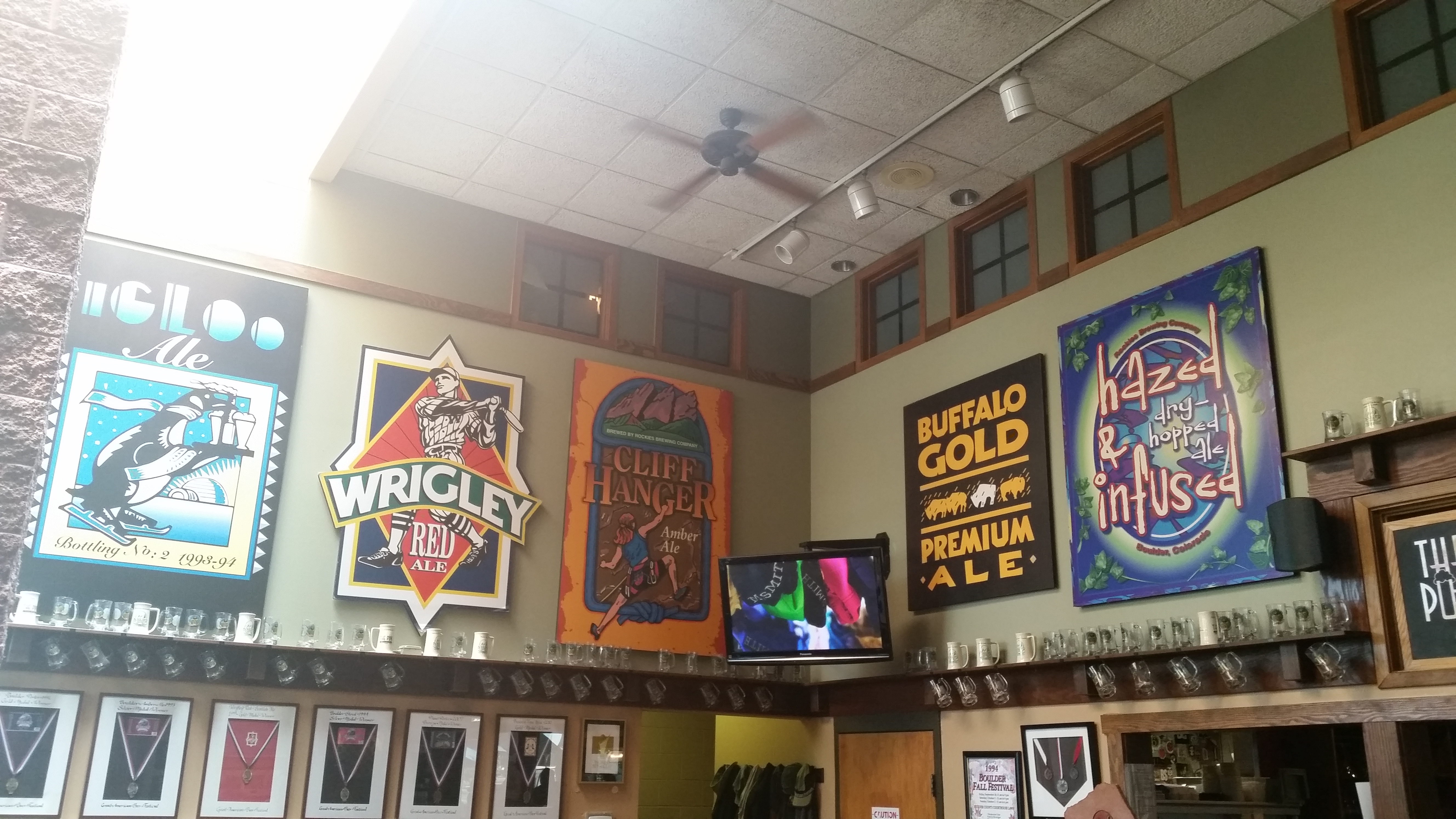 We made an audible and headed back into Boulder. Some quick research for somewhere open for lunch lead us to Twisted Pine Brewing. Really cool pub scene, neat logo, and good beers. Lunch was fantastic. I got a Greek salad and a Mexican-style pizza. MB had a chicken wrap. We each selected five beers to try and sampled each others flight. Content with lunch and our first tasting of the day, we headed to our next stop.