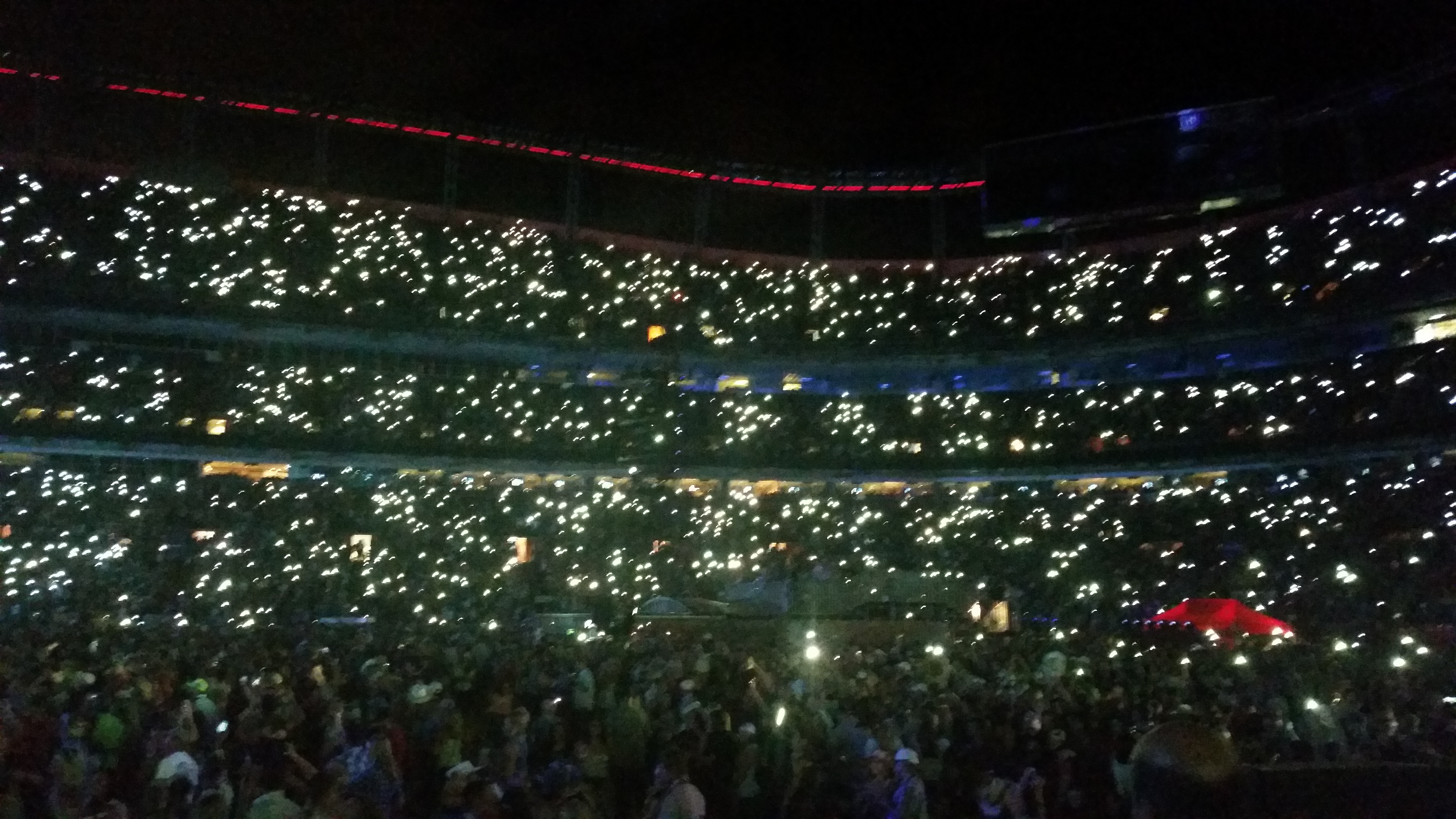 After a brief intermission, Jason Aldean took the stage and started to play his sets. His band played for about 90 minutes. While I don’t know many (read: any) of his music, Merri Beth was having a blast and getting into it. The two girls next to me seemed to know every word to every song and they were totally digging the show.