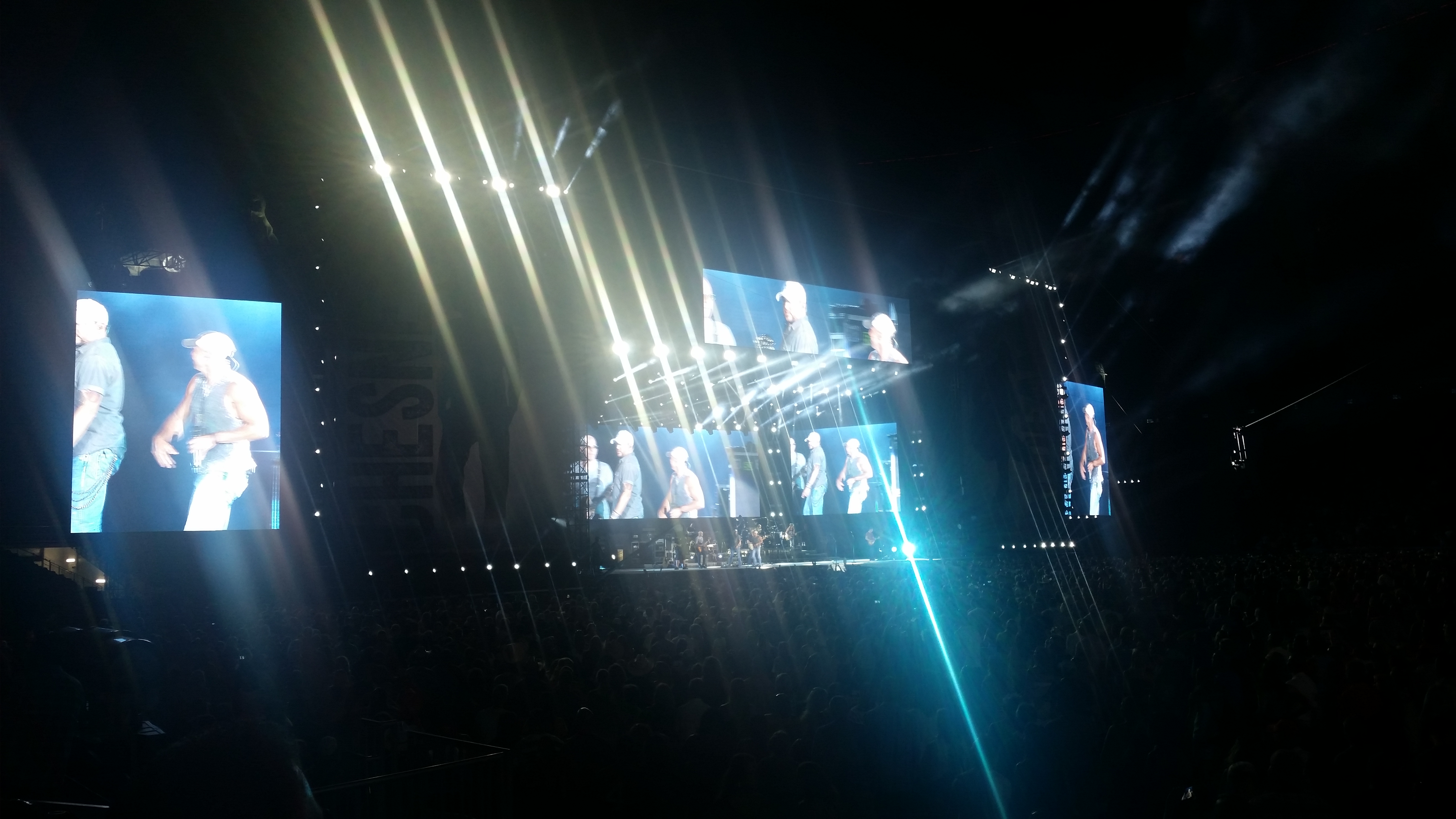The stage was being set for a 9:00 pm start. And a few minutes after nine, a video introduction welcoming everyone to the show started. The stadium was packed for Kenny Chesney and the crowd was alive with excitement. I could tell immediately that Chesney feeds off the crowds energy and I could tell he genuinely loves performing and playing music—more so than many of the concerts I’ve been to. You could tell by his gratitude and see it in his facial expressions. It helped that there were gigantic screens plastering the stage.