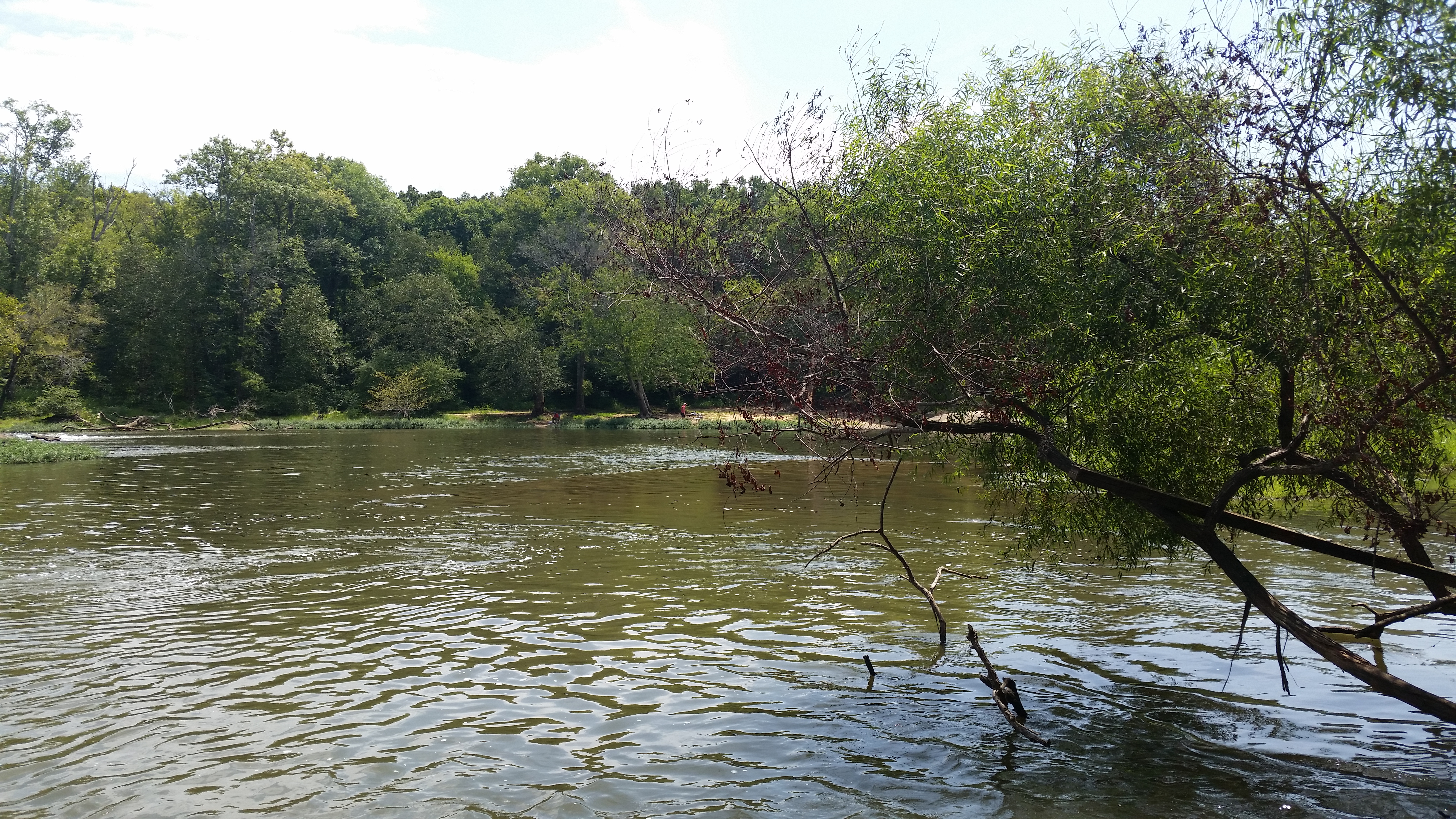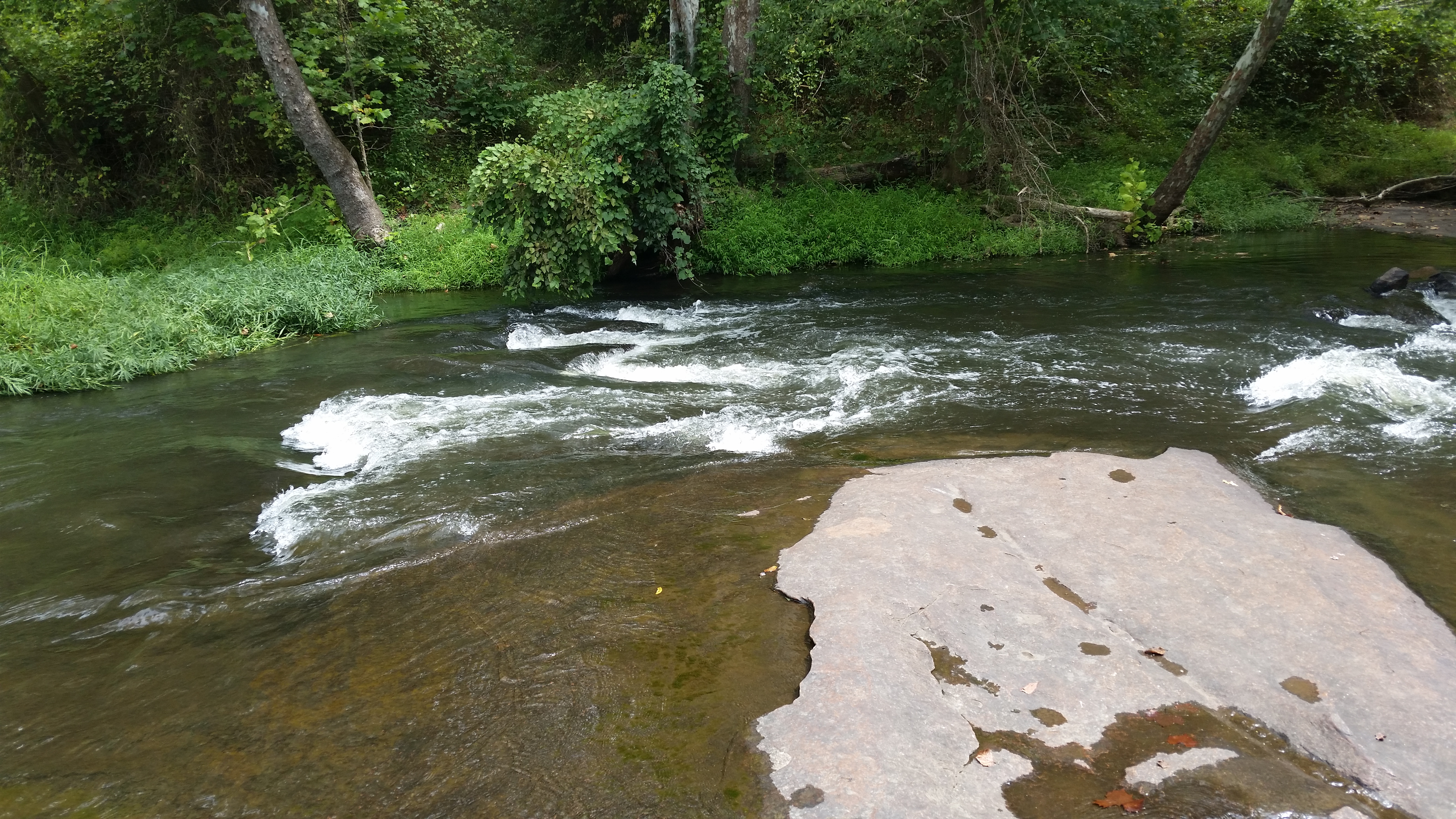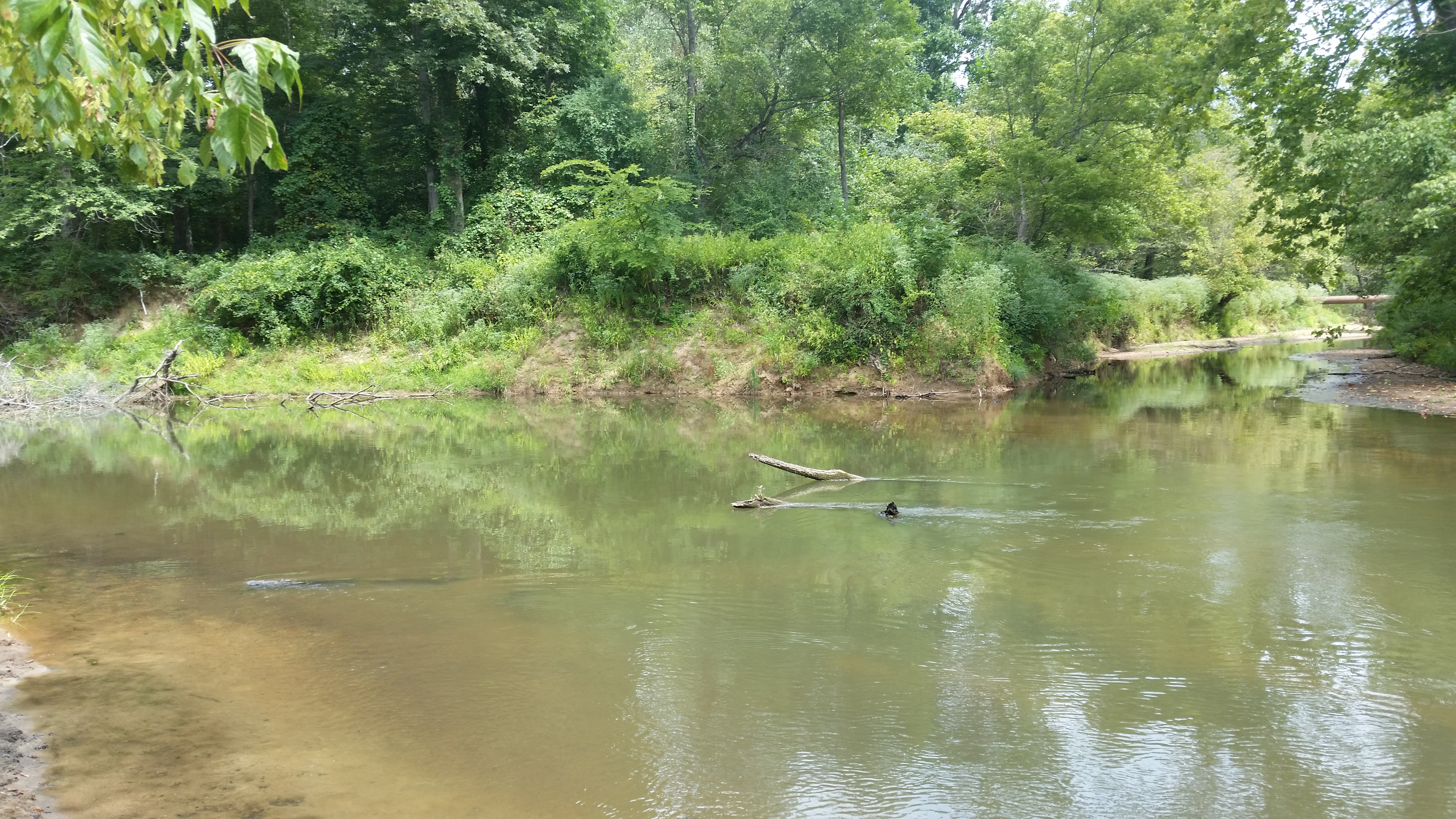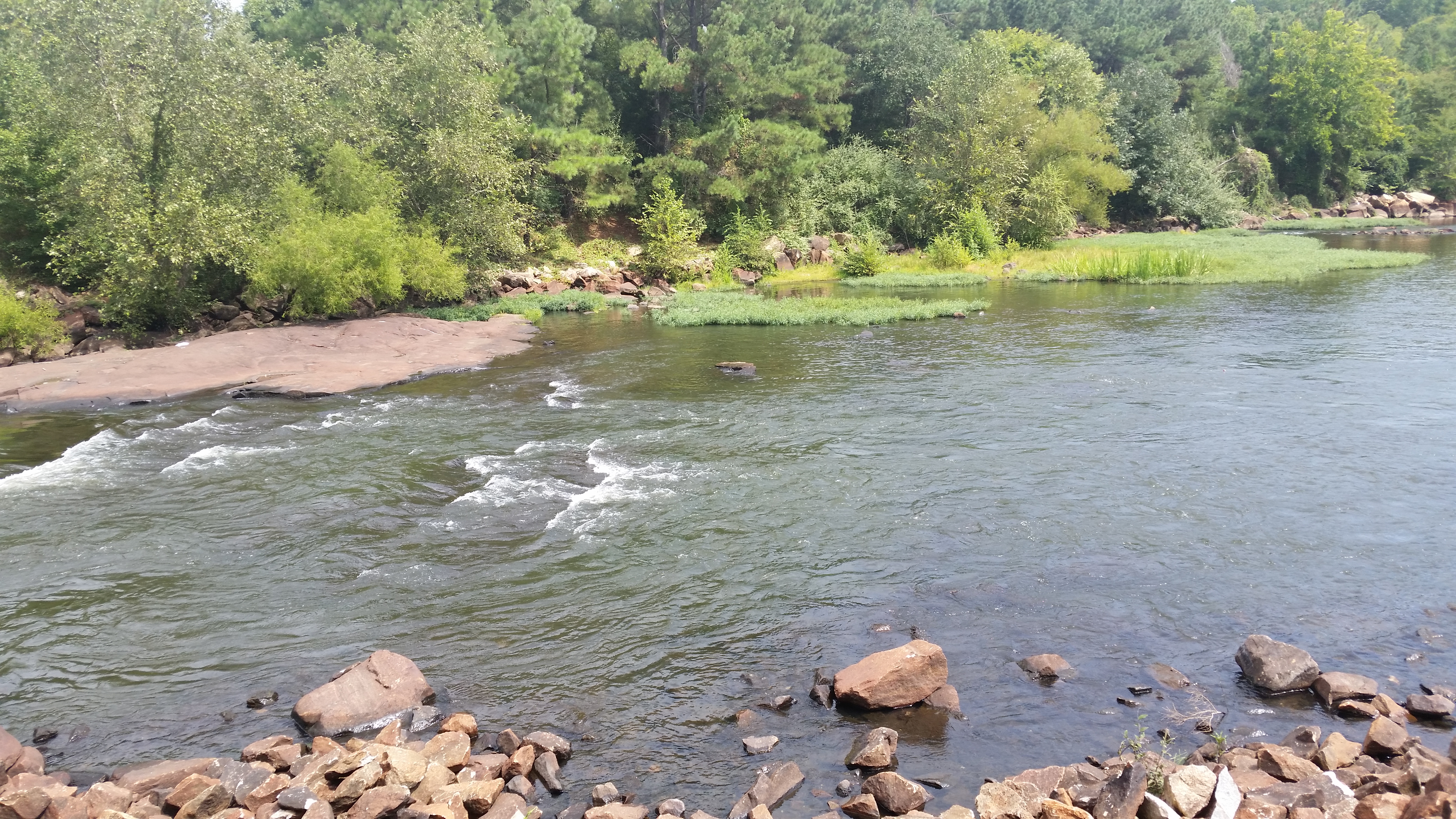 I started near Anderson Point Park in East Raleigh near mile marker 17. I had 17 miles to ride—upstream—to get to Falls Lake. The weather was amazing, 78º with southerly winds and low humidity. Perfect for riding! It took me about an hour and twenty minutes to reach Falls Lake. Once I arrived, it was nice to take a break and enjoy the scenery.
