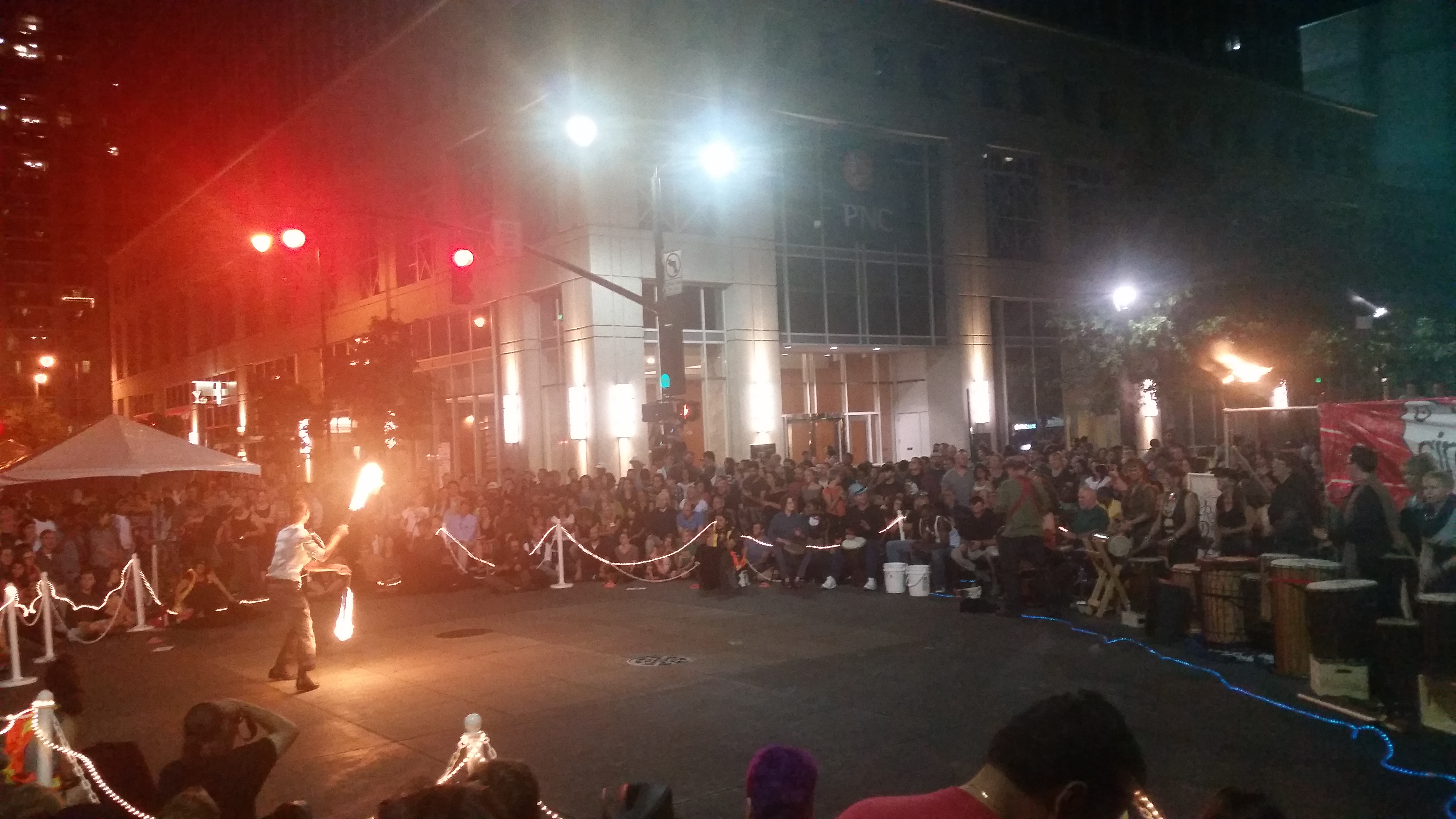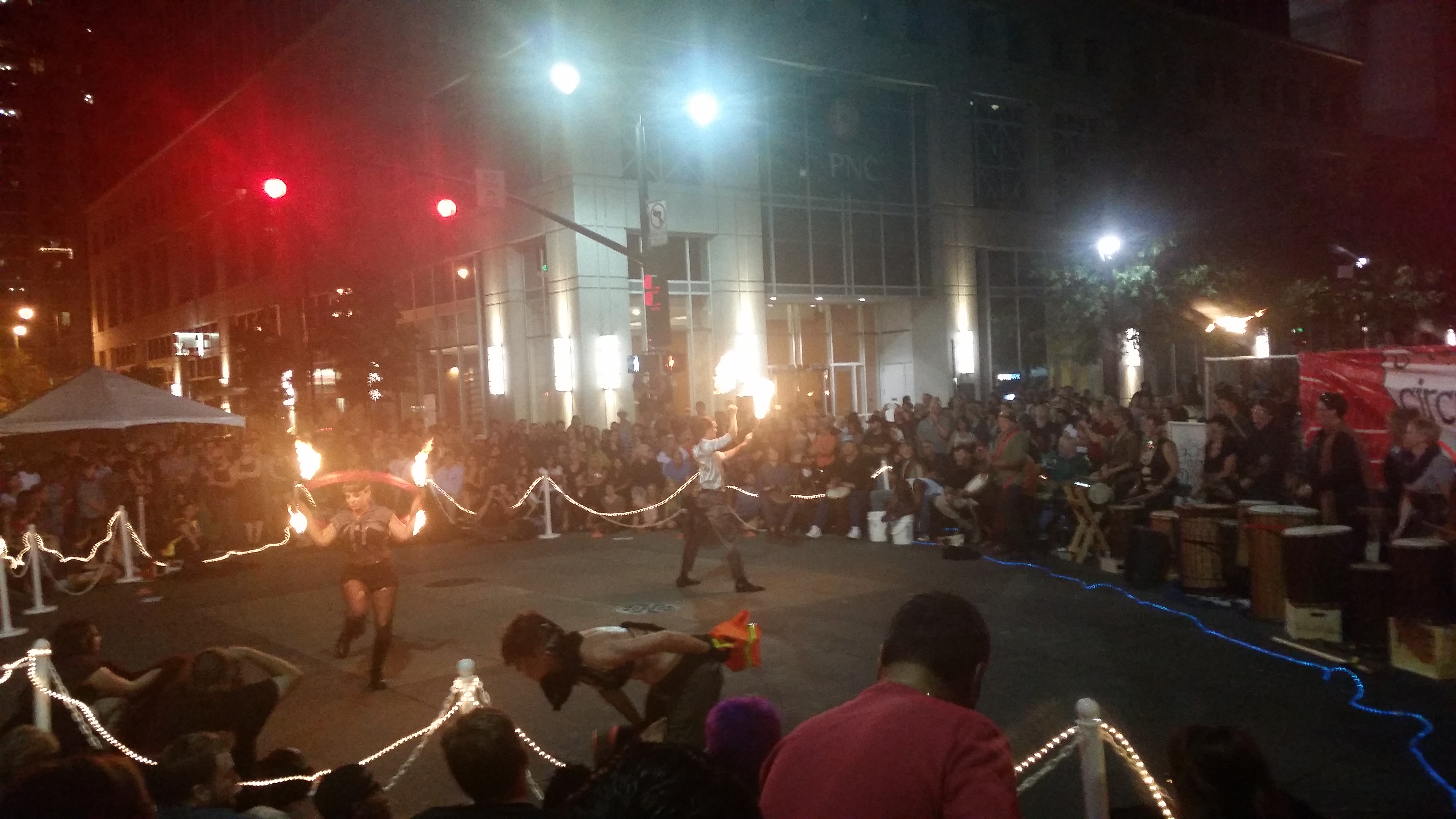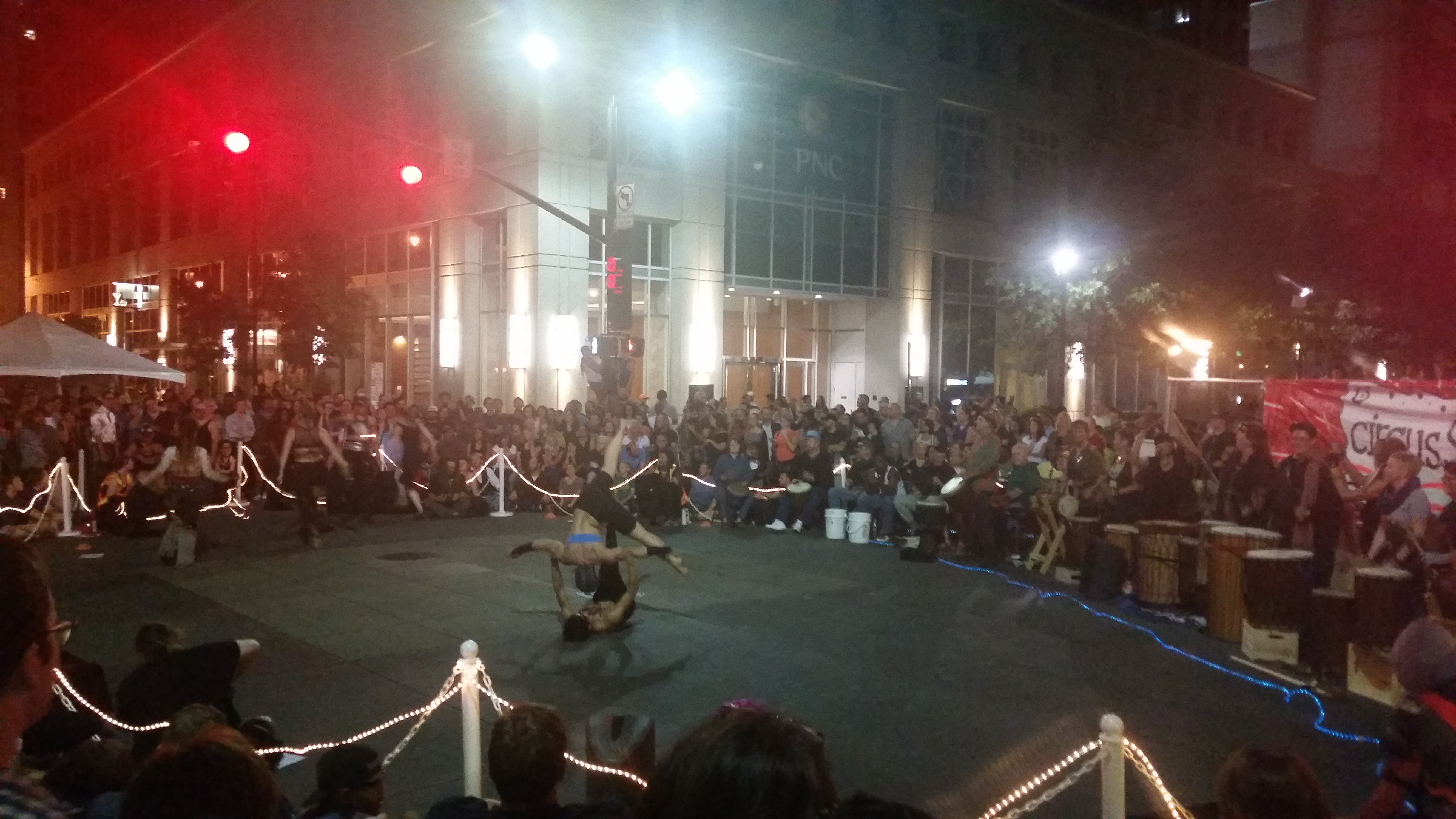 Merri Beth and I took a cruise down Fayetteville Street to see some of the activities. Lots of things were still getting set-up, but the “circus” was in town. We saw some of the circusSPARK performers marching in the circus parade from Martin Street to City Plaza.