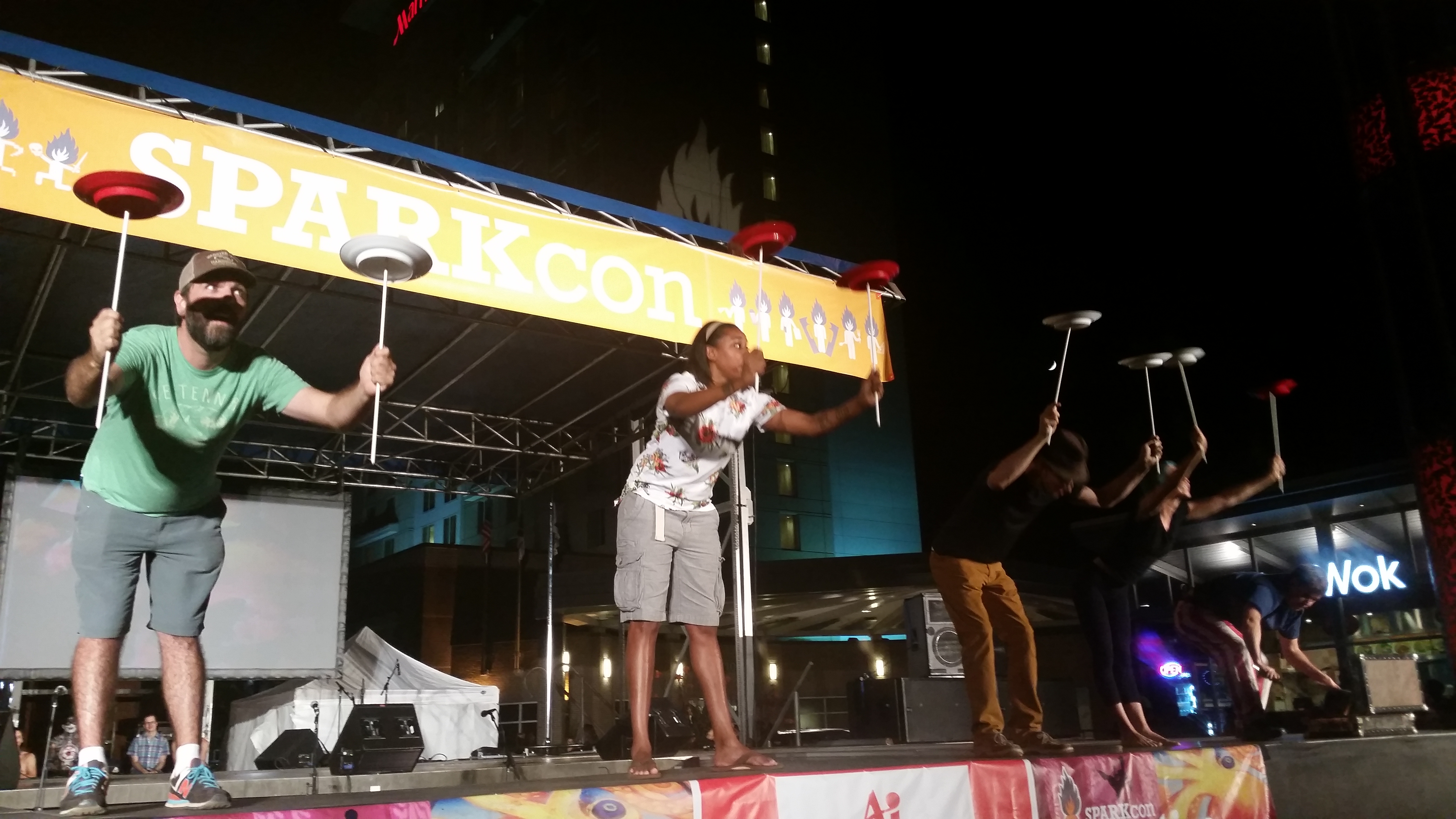 MB and I grabbed some dinner at Busy Bee, then did a drive by of the circusSPARK fire conclave before heading over to Kings. It was time to see some live music compliments of musicSPARK. We enjoyed performances from Jaded Vocals, Zen Groove Arkest, and Rissi Palmer. A few friends joined us at Kings, and lots of the SPARKcon organizers (bobbleheads) were there to see the fruits of their labor.