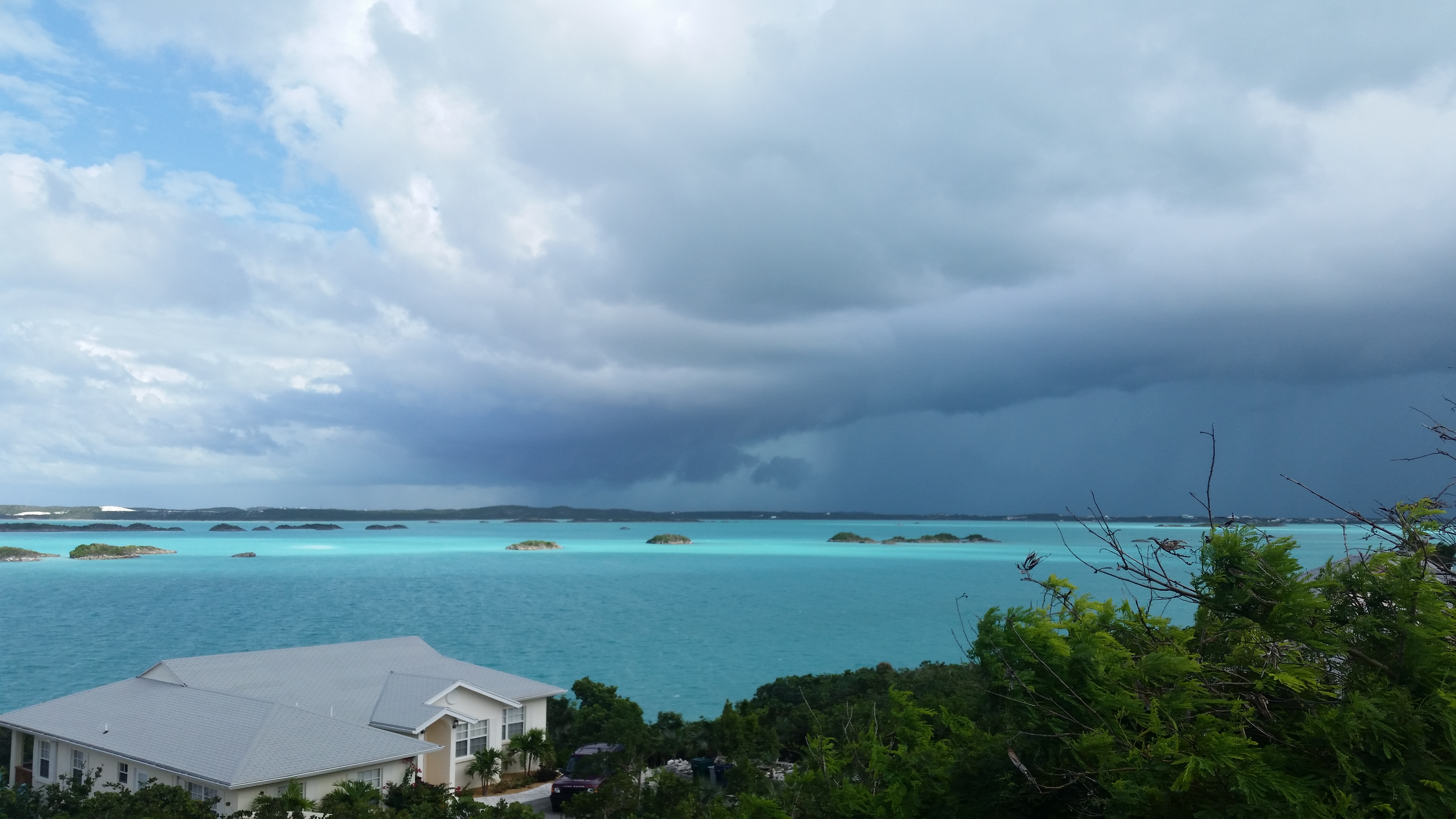 Well, the storm was inevitable. We packed up our beach gear back in the car and started to explore the area around Chalk Sound. Even though there were storms approaching, the colors of the sound were magnificent. Bright blues and contrasting clouds made for some really amazing views. (See the lead image.)
