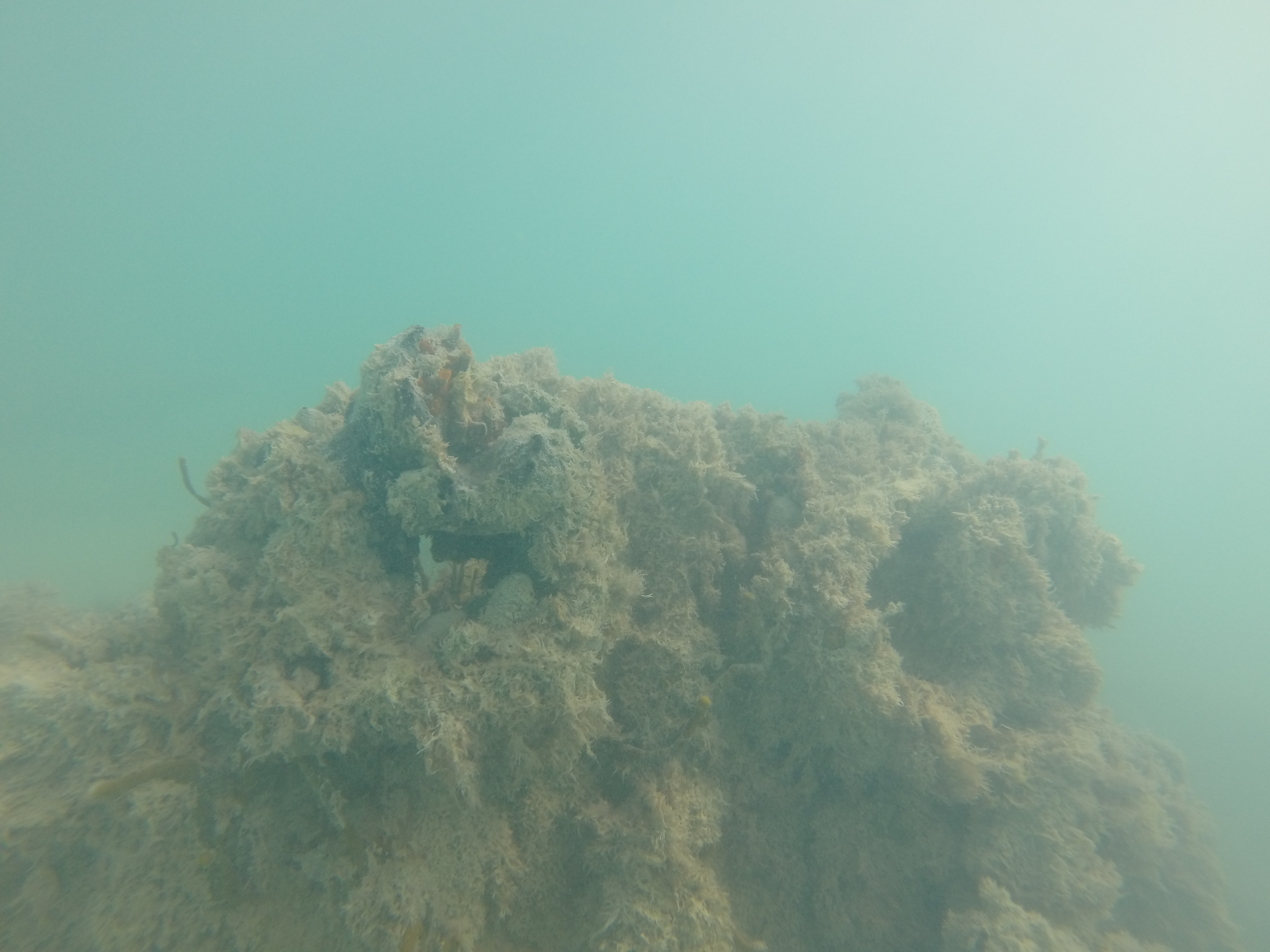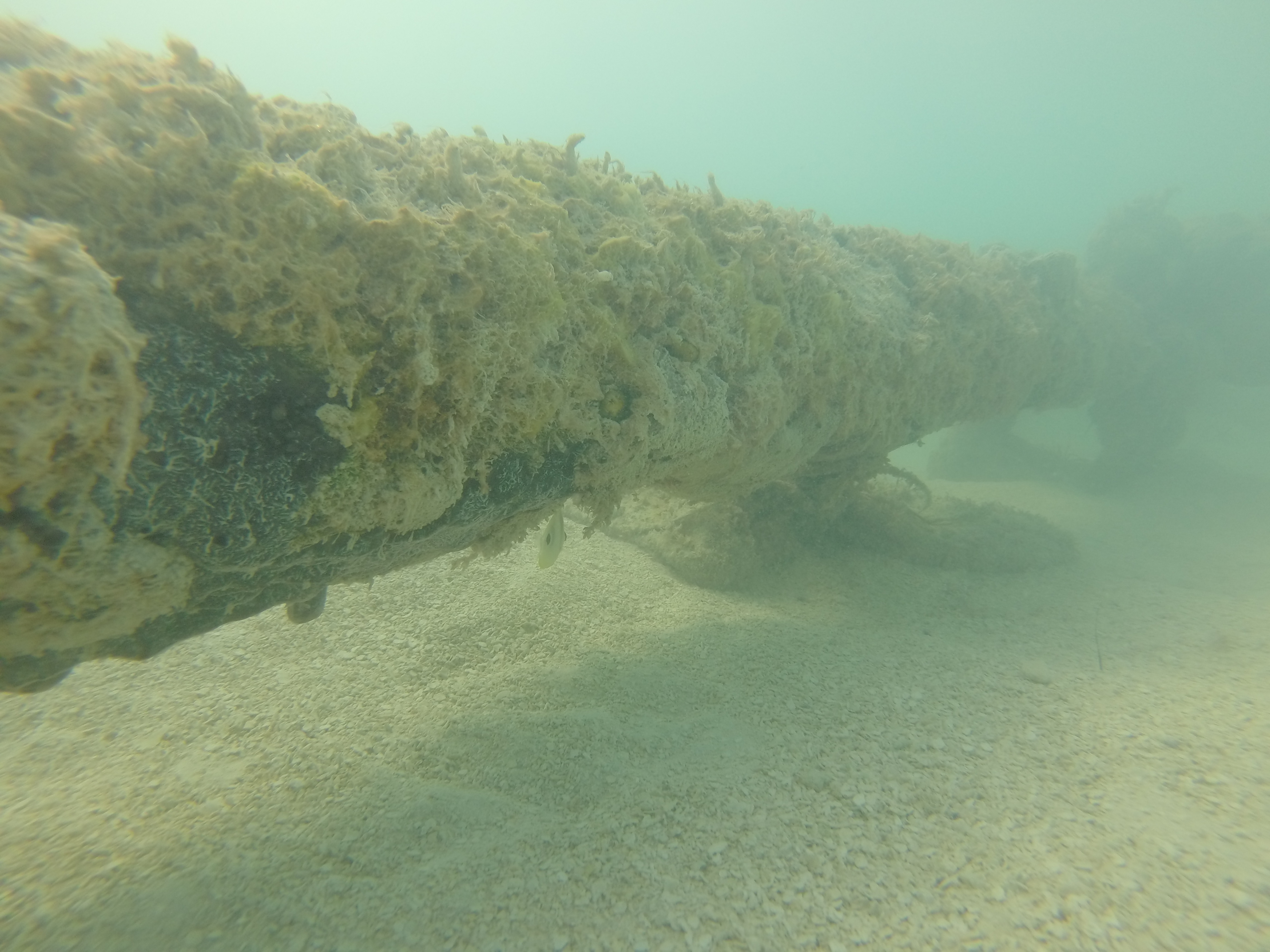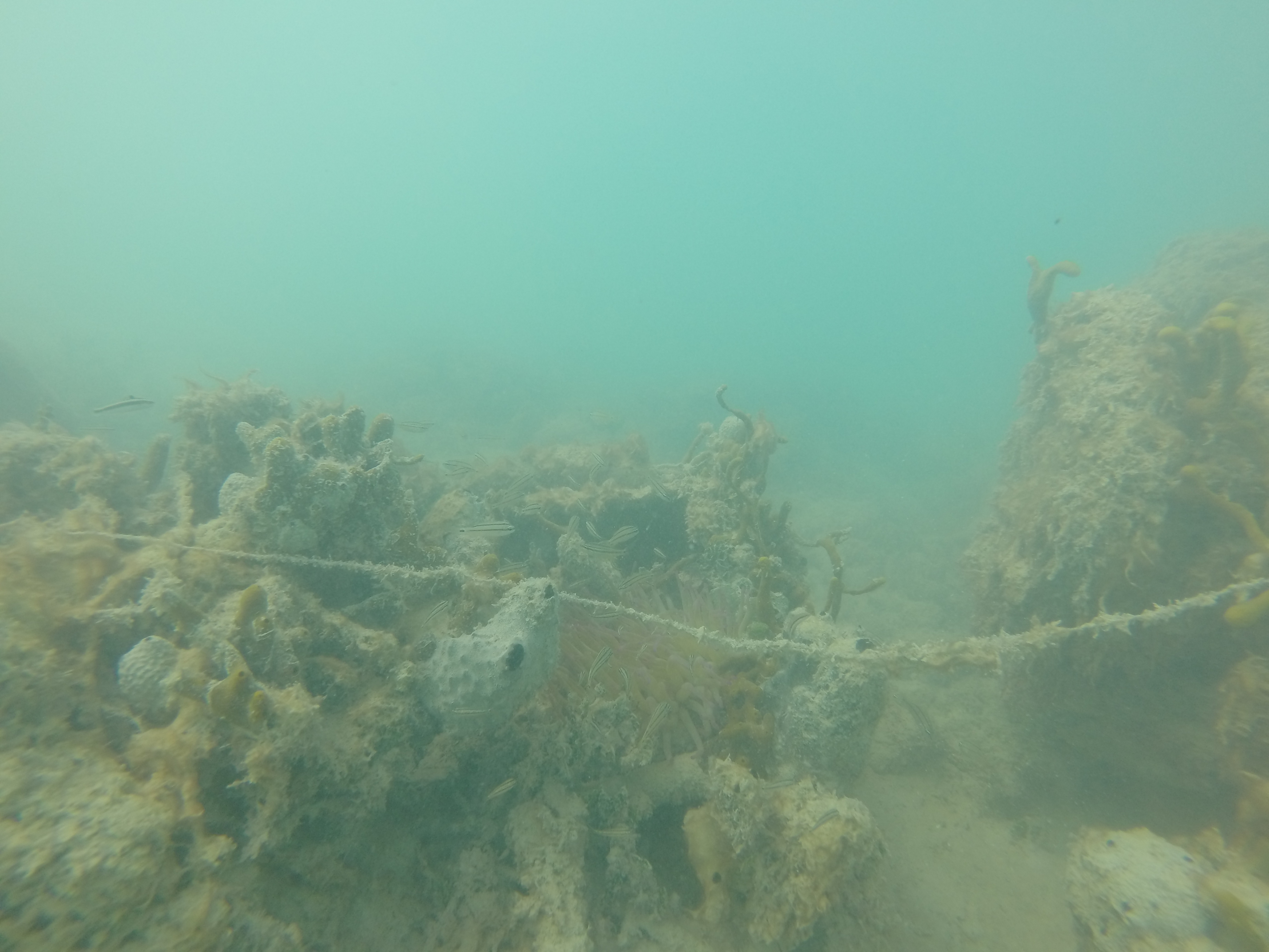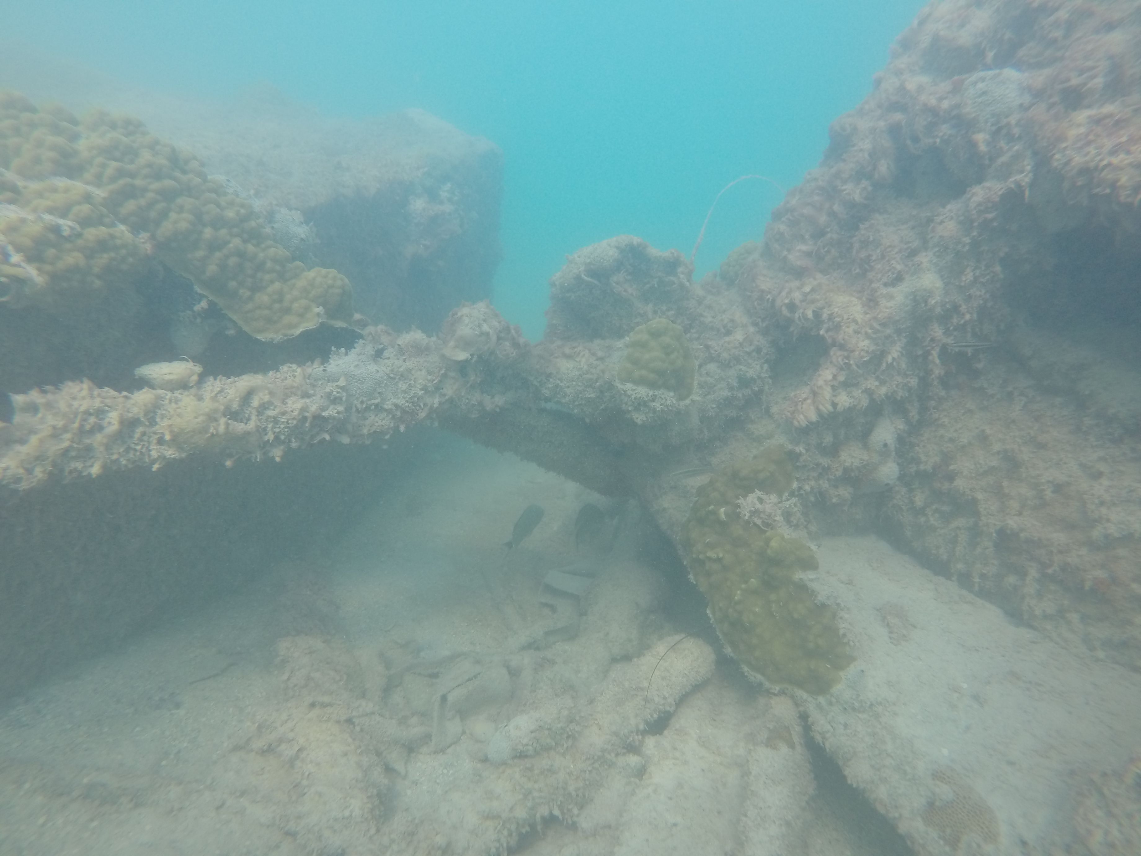 The water was calm, the bay was shallow, and our day just got a little better. Zander and I grabbed our snorkel gear and headed out. We randomly came across a sunken boat on the outskirts of the bay. We were way out there. I was heading towards a dive buoy and we totally scored.