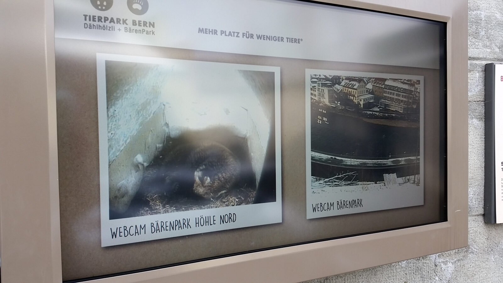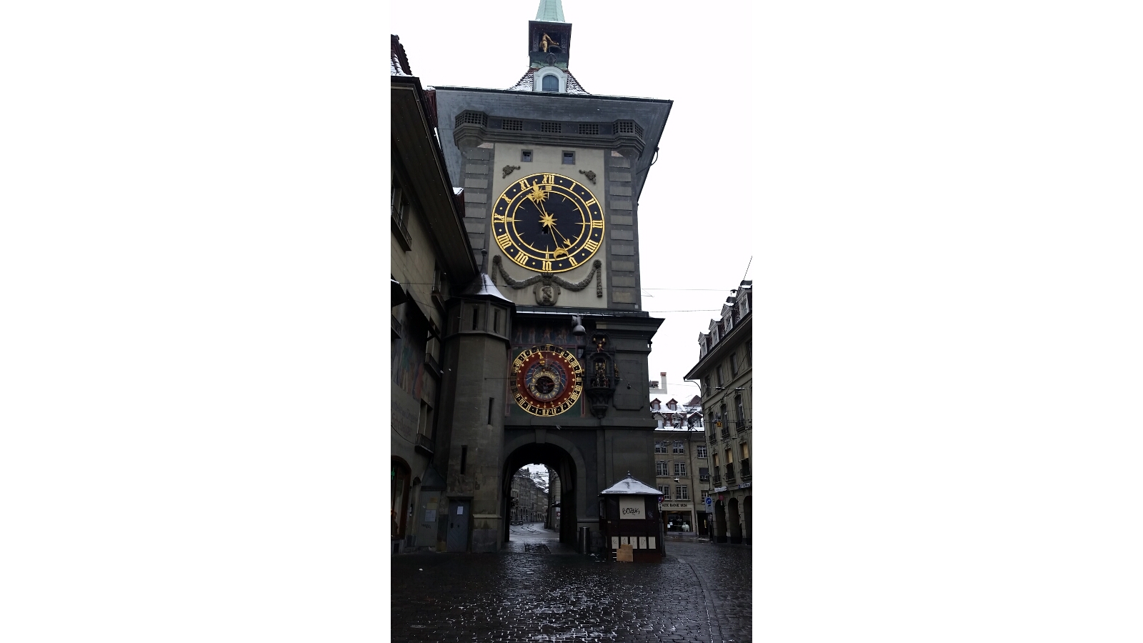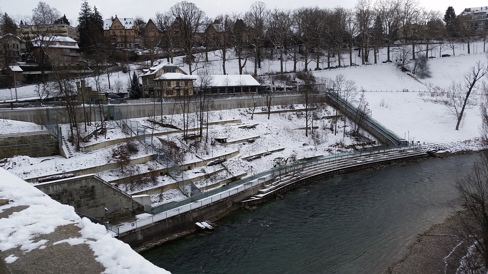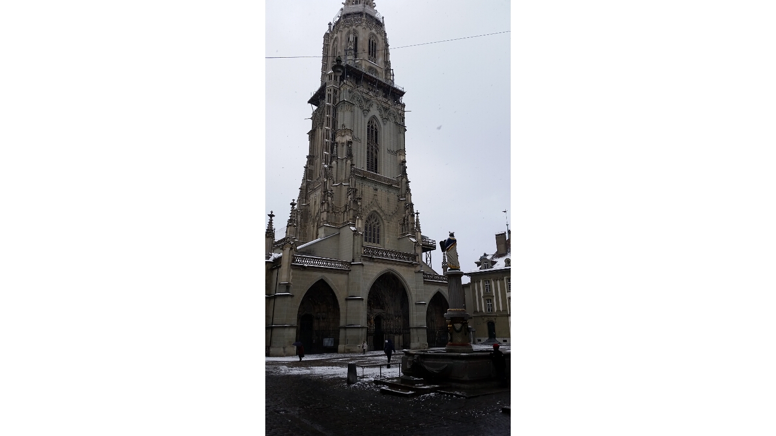 After breakfast at the hotel, we ventured out into the city. A light snow was falling, but we were bundled up appropriately. On our way to the Bear Park, we visited the Clock Tower (Zytglogge) and Das Bern Münster (a Bern Cathedral and Cathedral of St Vincent). As we arrived at the Bear Park, it dawned on me that it was winter. And what do bears do in the winter time? They hibernate. So while I was thinking about why there weren’t any bears out in the park, we got to see them snoozing on the web cam.