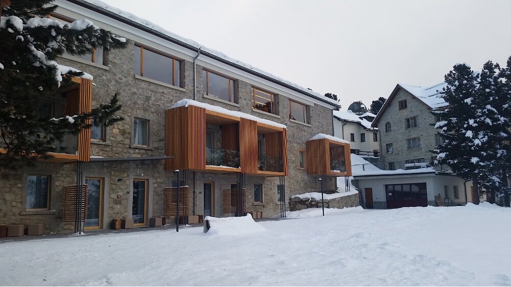 We finally arrived at the train station in St. Moritz. The train ride was relaxing, comfortable, and several naps occurred while we were in transit. Next, we had to figure out how to get to our hotel. We were in luck and found a courtesy phone and we were able to make contact and arrange transportation on their shuttle. While we waited for 45 minutes, we grabbed a light lunch at the train station cafe. Breakfast was served on the plane, which is why we didn’t need to eat while we were at the airport.