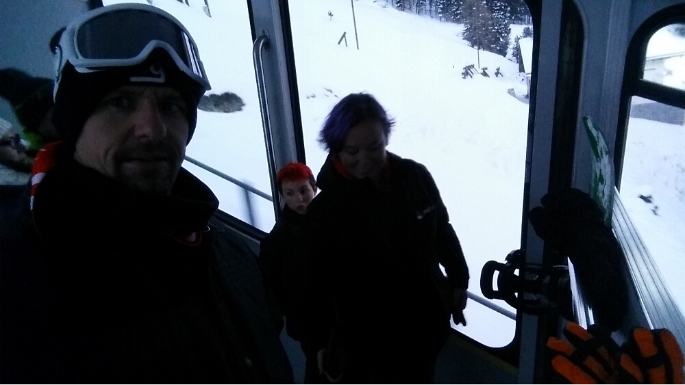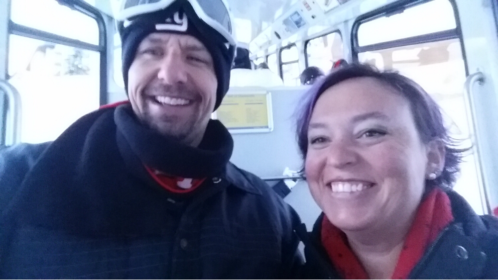 Alas, our time snowboarding expired. We made our way to the Chantarella rail station where MB was waiting for us. We took the last train back to town and returned our rental gear. Merri Beth brought our boots with her, and we were ready to hit the town for the evening.