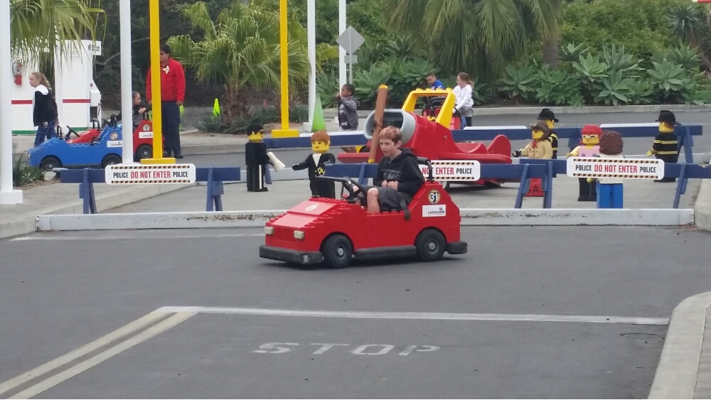 Zander wanted to get behind the wheel at the LEGO driving school. While we were standing in a really long line, they ended up shutting the ride down. MB and Coco where waiting over at the Junior Driving School that had an equally long line and when it was all said and done. Coco didn’t even get a full lap in on the track because some kid T-boned her into the wall and the attendant didn’t move the cars fast enough. While Zander and I were patiently waiting, they had opened up the other driving school, so he was able to get in the front of the line and get a fun ride in.
