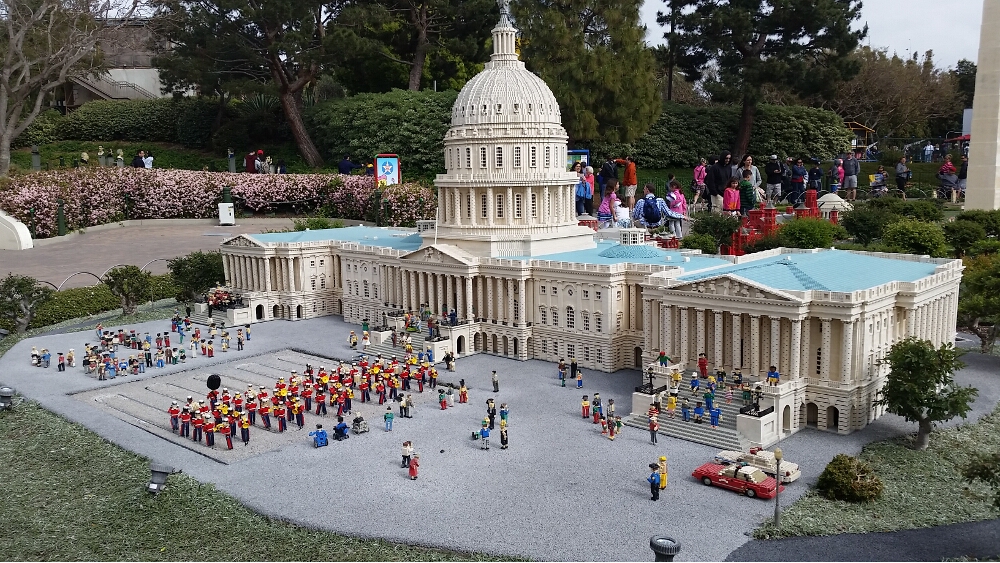 Once back in the park, we hopped on the boat cruise and then walked through Miniland USA. I’ll have to say this was one of the coolest parts of the day. Seeing the New York City skyline, Vegas, Washington DC, San Francisco, Mount Rushmore, and lots of great Star Wars scenes, including the Death Star, was pretty awesome. After that, we built a LEGO boat and raced it down the waterway.