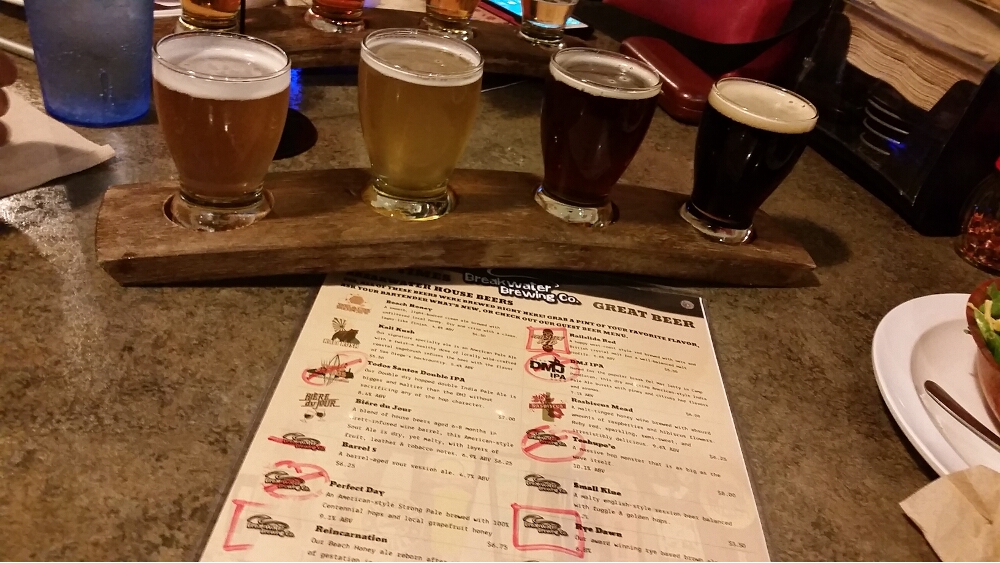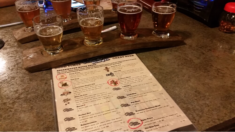Walking around all day and standing in line makes you exhausted. The family made a pit stop back at the condo to freshen up, change shoes, and get ready for dinner. We headed down the way to Breakwater Brewing Company. Their food menu of salads, pizza’s, sandwiches and more looked delicious. And the beer menu was looking quite delightful as well.