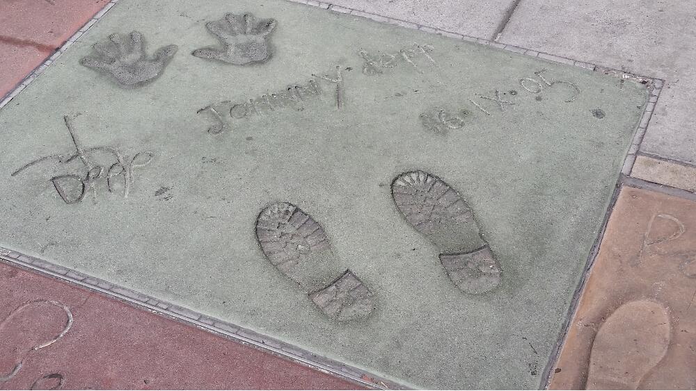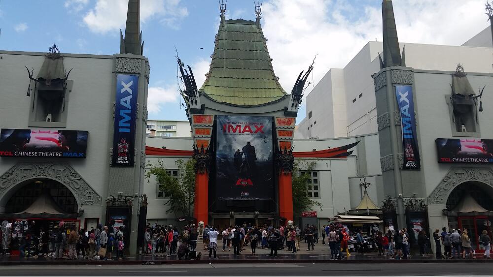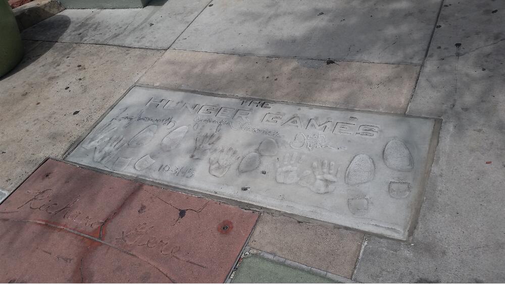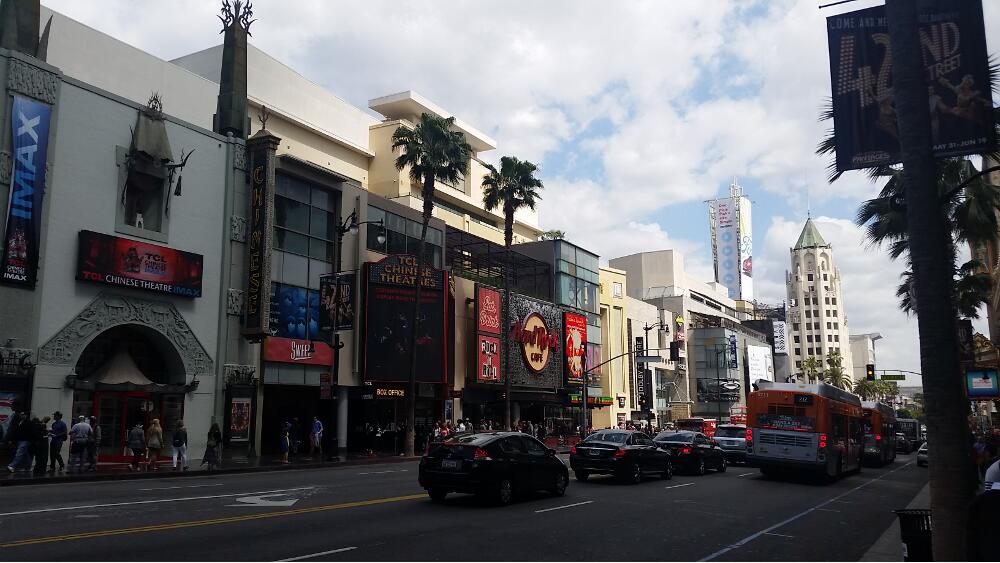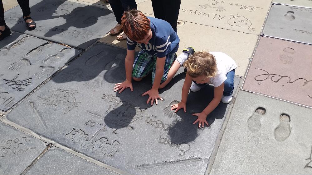 hollywood_20160330_130342After workouts and breakfast, we packed our lunch and headed to Tinsel Town. Traffic was much better this morning and no rain was looming around. We parked at Hollywood and Highland, then got to the street and started looking at all the Hollywood stars on the sidewalk. We eventually made it to the Chinese Theater, where we meandered for quite some time and enjoyed seeing all the imprints from famous stars.