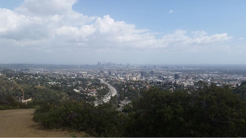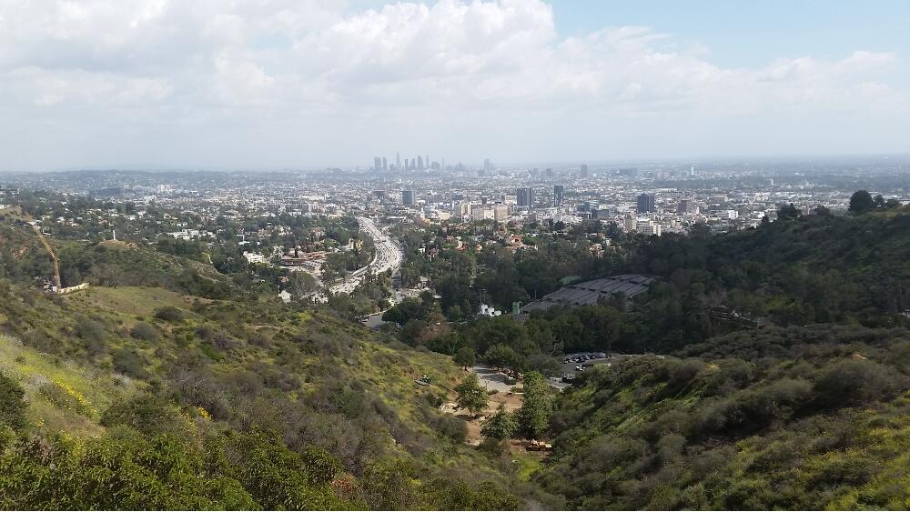 Coco enjoyed seeing the star for Mickey Mouse, while MB was stoked to see Drew Barrymore. Donald Trumps star was not defaced in any capacity when we passed. After walking the sidewalks, we grabbed a quick drink and a snack at California Pizza Kitchen, then, headed up the mountain to the Hollywood Bowl Overlook.