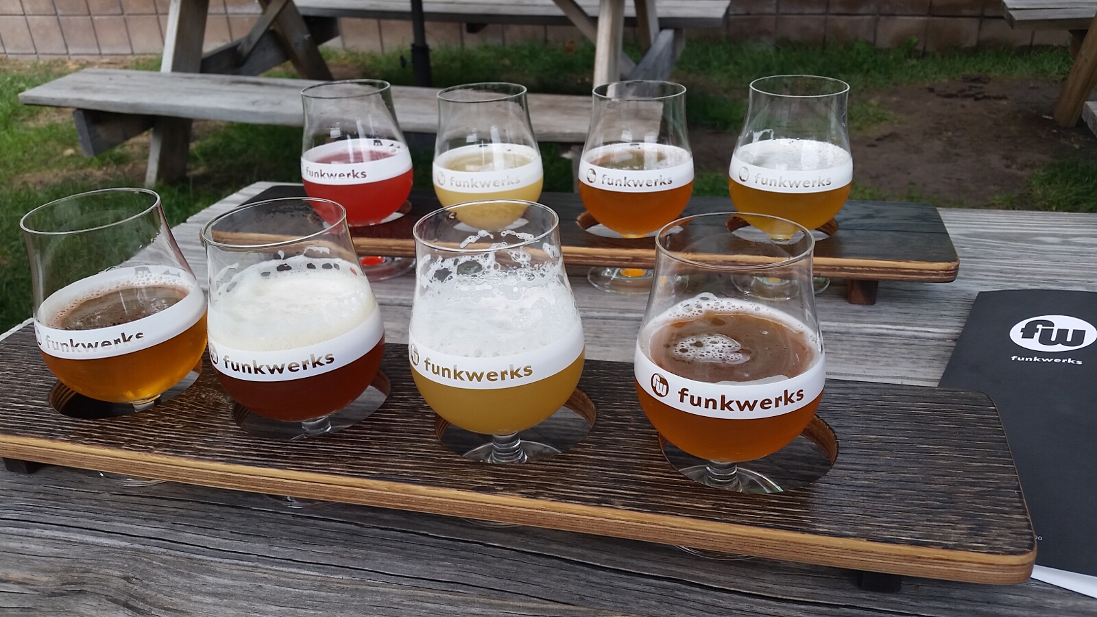 Our next stop was amazing. Funkwerks is exactly as one would expect. Funky and delicious. MB and I each ordered a flight and shared it. Wow, we probably could have just shared one, but the beer is THAT good. We sat outside on a picnic table with Coco and busted out our laptops to get a little work done. I booked some upcoming travel for LinuxCon, wrapping up my flight, hotel, and transportation to/from the airport. Score!