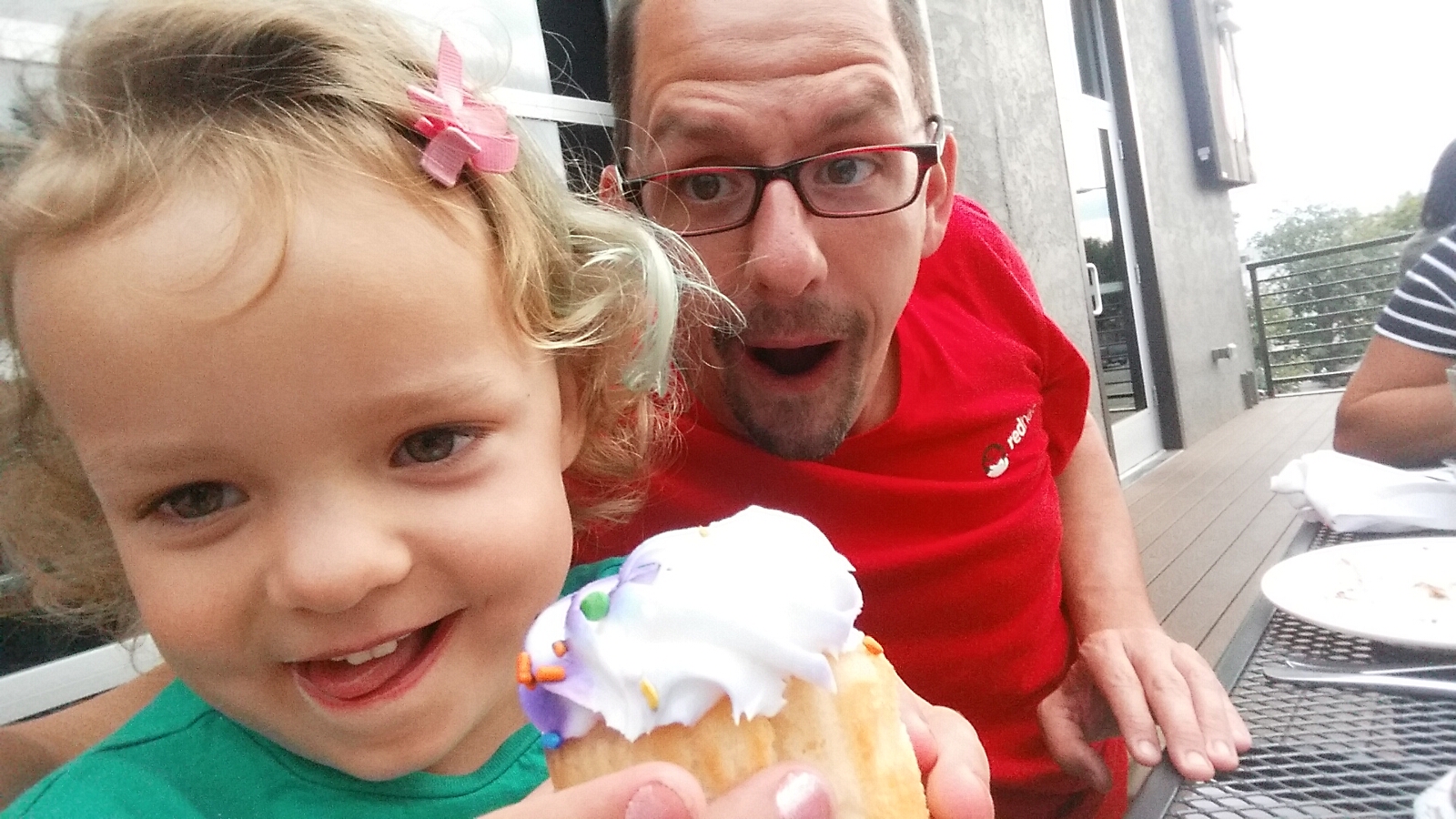Appetizers were coming out. Delicious. Then we shared several pizzas for dinner. We brought cupcakes with us to celebrate Coco’s fourth birthday, and they were a hit with the kids. The evening was beautiful and we had an amazing sunset while we finished our meal.