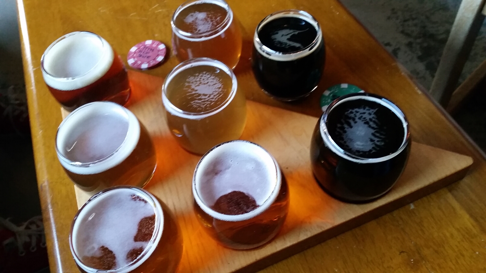 Samples included: Lookout Stout, Dark Town Brown, Feelin Peachy, Alison’s Front Porch Pale Ale, On the Trail Golden Ale, Belgian Ale, Mountain Hop Shine, and Black Mountain IPA.